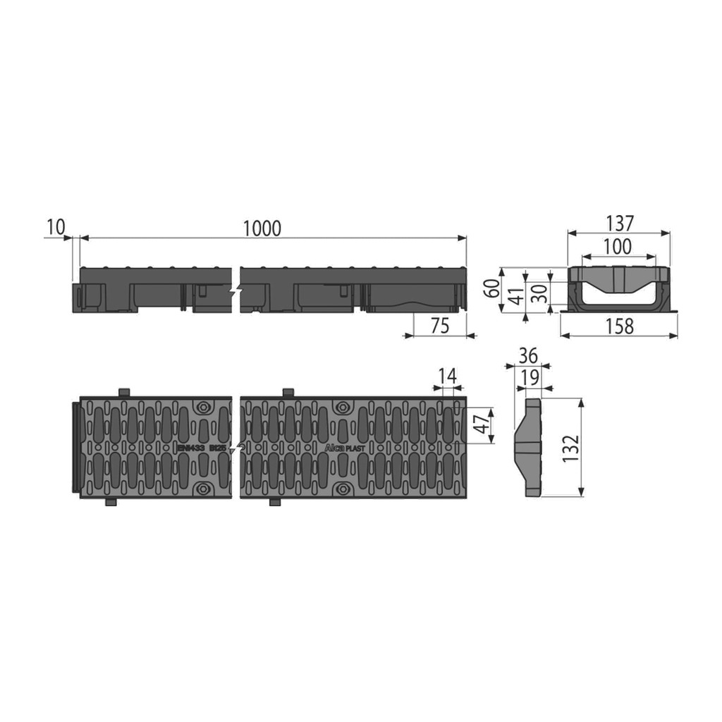 Domov » Vonkajšie žľaby znížené LOW » AlcaPlast AVZ112-R402 – Vonkajší žľab 60 mm s plastovým rámom a kompozitným roštom B125