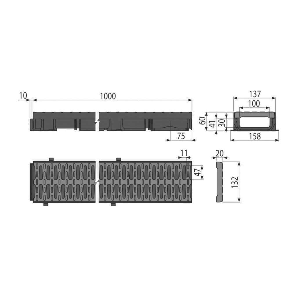 Domov » Vonkajšie žľaby znížené LOW » AlcaPlast AVZ112-R501 – Vonkajší žľab 60 mm s plastovým rámom a plastovým roštom A15