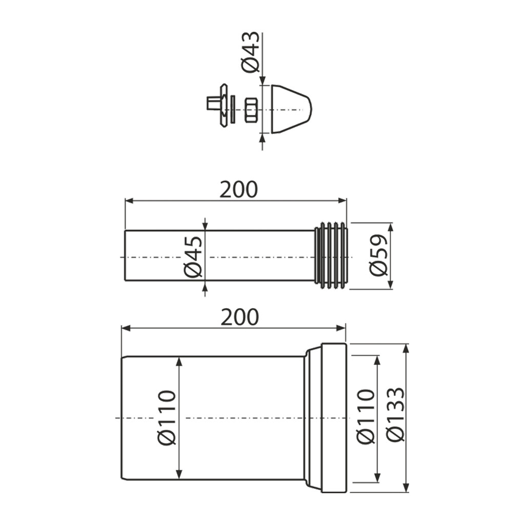 Domov » Sanita » Toalety » Podomietkové inštalačné systémy » Inštalačné systémy pre WC » AlcaPlast M900K-DN110 – Pripojovacia sada k závesnému WC – DN110, 200 mm, PE, chróm