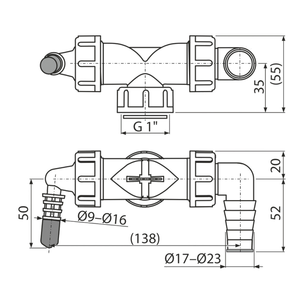 Domov » Sanita » Kúpeľne » Odtokové systémy » AlcaPlast P156Z-G1 – Dvojité kolienko G1″ / 8–23 s klapkami