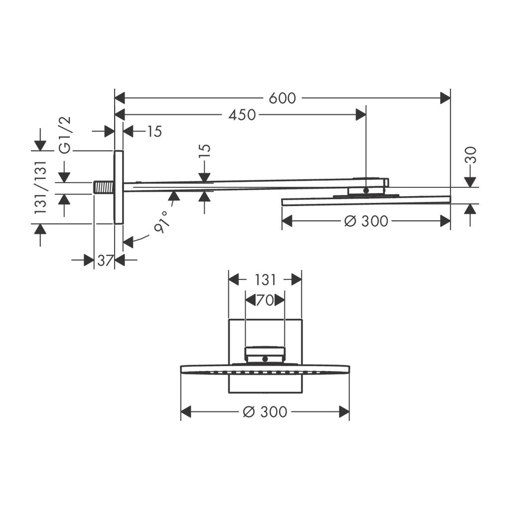 Axor ShowerSolutions – Hlavová sprcha 300 so sprchovým ramenom, 1 prúd, chróm 35300000