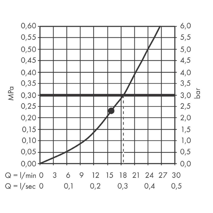• Minimálny prietokový tlak: 1,9 baru
