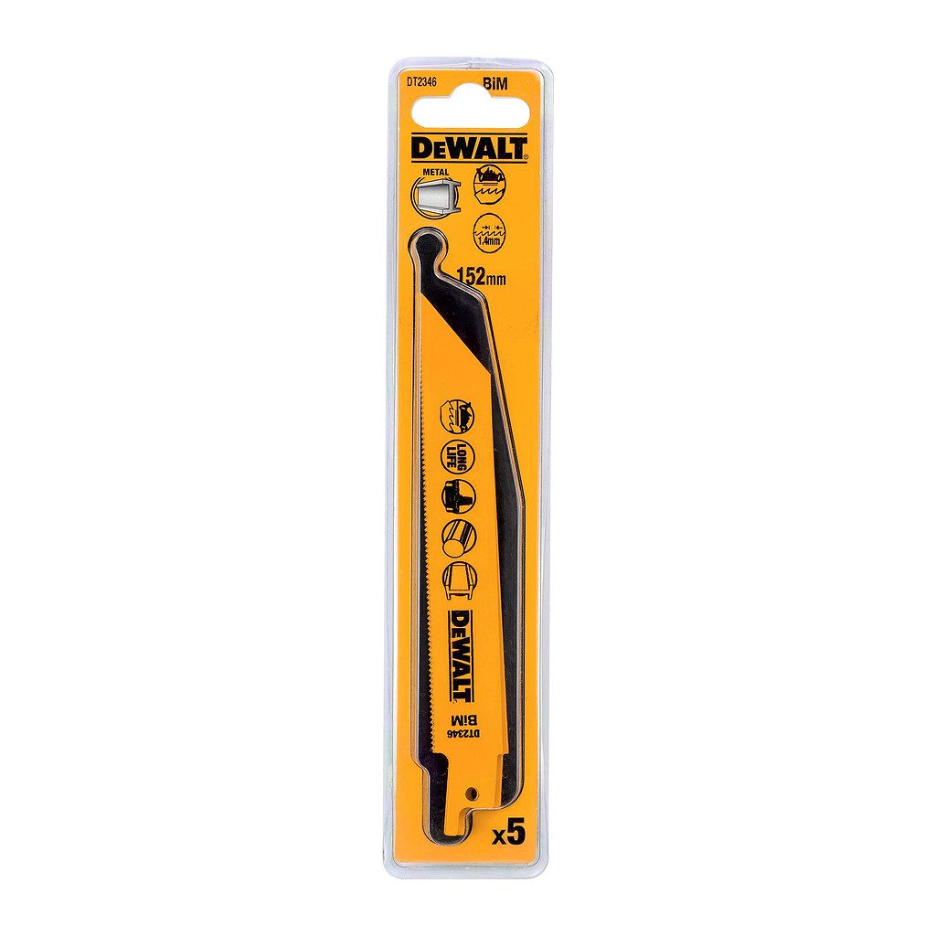 Domov » Náradie » Príslušenstvo » Pílové listy, pásy a reťaze » Pre chvostové píly » Bimetalové pílové listy do kovu » Hromadné balenia » DeWALT DT2346 – Bimetalové pílové listy na kov, 152mm, univerzálne, pre AKU mečové píly, 5ks