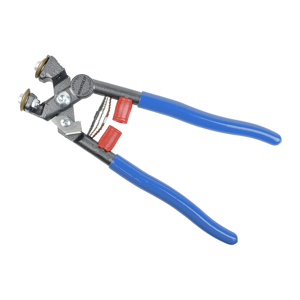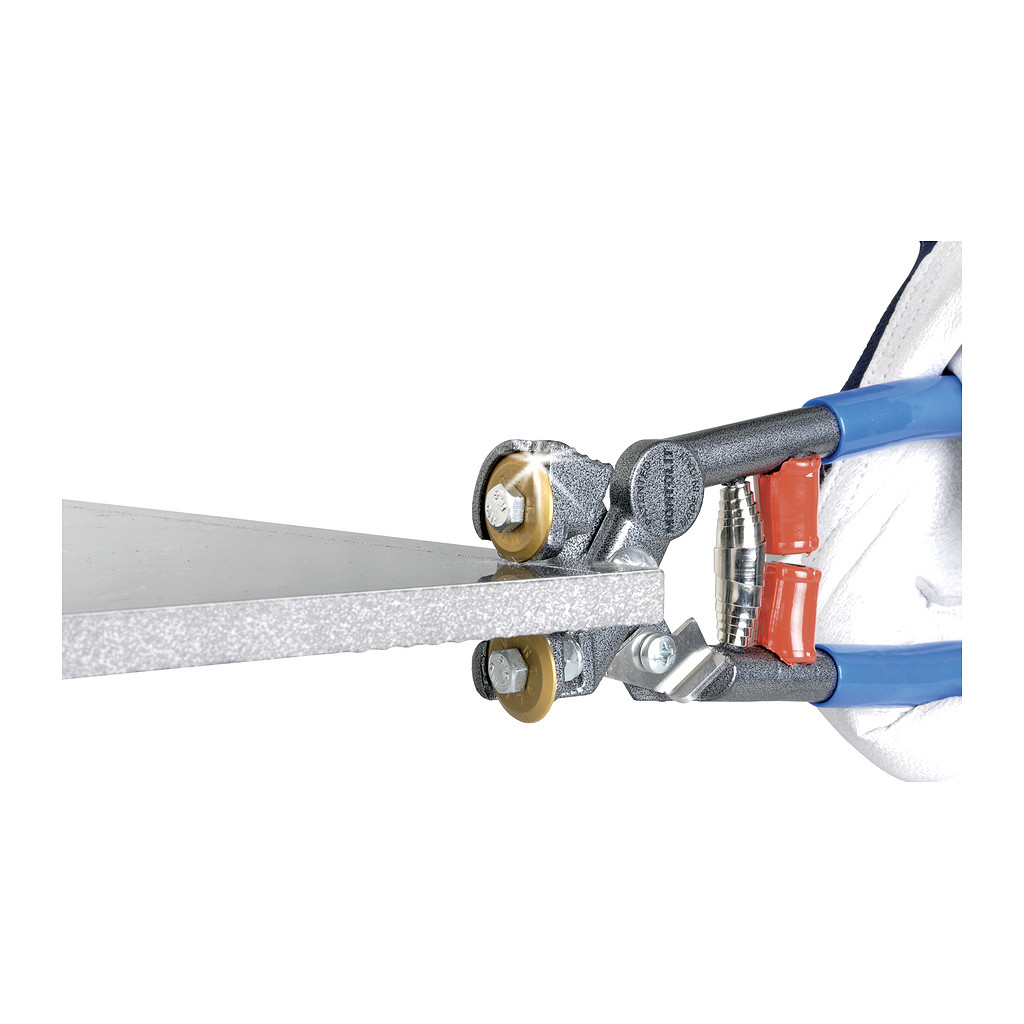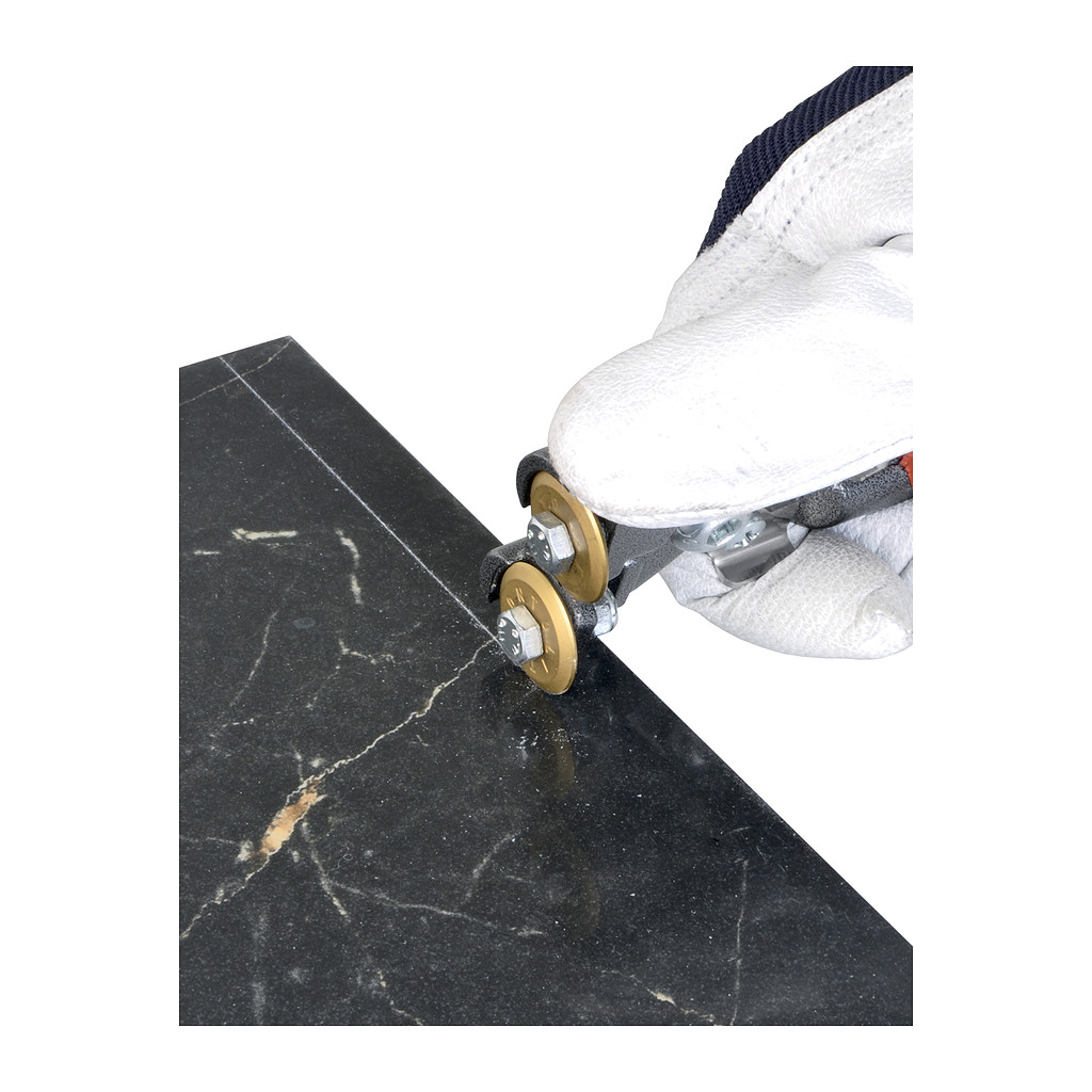 Obkladačské kleště s pohyblivým kolečkem pro naříznutí. Speciálně konstruované na nejtvrdší dlažbu, gres, sklo, mozaiku, kameninu a extra tvrdé dlaždice. Obkladačské kleště na nejtvrdší slinutou dlažbu, gres, sklo i mozaiku jsou vyrobeny z vysoce kvalitní uhlíkové oceli. Díky tepelnému zpracování vynikají kleště vysokou tvrdostí a dlouhou životností. Povrch kleští je poniklovaný. PVC na rukojeti slouží k pohodlnému uchopení kleští. Pružina zajišťuje zpětné otevření rukojetí. Dva gumové dorazy slouží pro jemné odpružení rukojetí po odštípnutí dlažby. Štípání zajišťují dvě titanová řezná kolečka. Vysoce účinná páka v kombinaci s koncentrovanou silou v bodě kontaktu mezi materiálem a řezným kolečkem zaručuje extrémně vysoké lámací síly a přesné výsledky štípání s minimální námahou. Spodní titanové kolečko je volné a může se otáčet. Pomocí něho a speciální opěrky pro palec, která umožnuje dostatečné zatlačení na kolečka, je možné materiál naříznout před štípáním. Naříznutí materiálu napomáha pro lepší a přesnější odštípávání dlažby. Titanové kolečko lze v případě opotřebení vyměnit. Lze použít na extrémně tvrdé materiály, kleště se nikdy neztupí. Na přiloženém videu je možné shlédnout pracovní postup štípání.