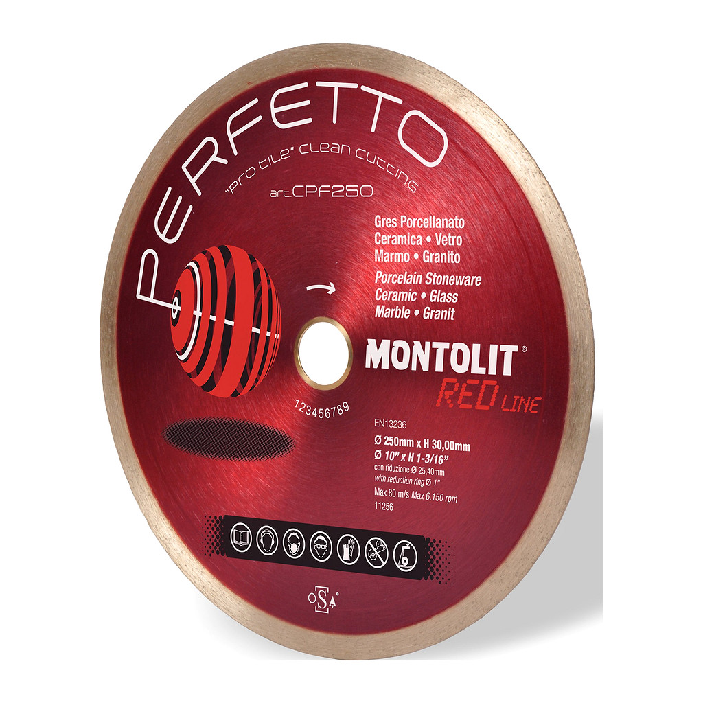 Montolit CPF250 – Diamantový kotúč CPF Perfetto, celoobvodový, veľmi jemný diamant, čisté rezy, mokré rezanie, 250mm, na obklady, glazovanú dlažbu, mramor a žulu