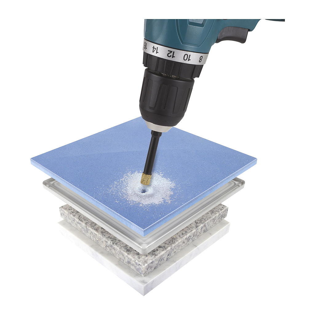 Vrtání malých otvorů tvrdé keramiky, obkladů, skleněných dlaždic, slinuté dlažby, mramoru, žuly a kamene. Průměr 6 mm. Fréza s dlouhou životností a nízkou cenou. Frézy FAJ slouží na vrtání malých otvorů pro zavěšení zařirovacích předmětů, upevnění věšáku. Fréza se doporučuje vrtat s vodou. Na začátku vrtání se fréza nakloní na stranu a poté, co se vytvoří drážka se vrtá krouživým pohybem. Pro zvýšení životnosti je dobré dělat při vrtání přestávky, aby se fréza zchladila ve sklenici vody, tím se zvýší rychlost při vrtání a prodlouží její životnost. Výrobce doporučuje používat při vrtání s korunkami chladící a ochranný přípravek M-PERFORMER, do kterého se během vrtání fréza namočí. Potřebujete vyvrtat otvor do skleněné dlaždice nebo desky, která má spodní stranu barevnou a bojíte se, že se bude barva na vrtu odlupovat. Použijte frézu FAJ a jednoduchý trik, který je ke shlédnutí na poslením videu. Jednoduše začněte vrtat na spodni barevné straně, pak dlaždici obraťte a vrtání dokončete na vrchní straně. Na přiloženém videu je možné shlédnout pracovní postupy pro vrtání.