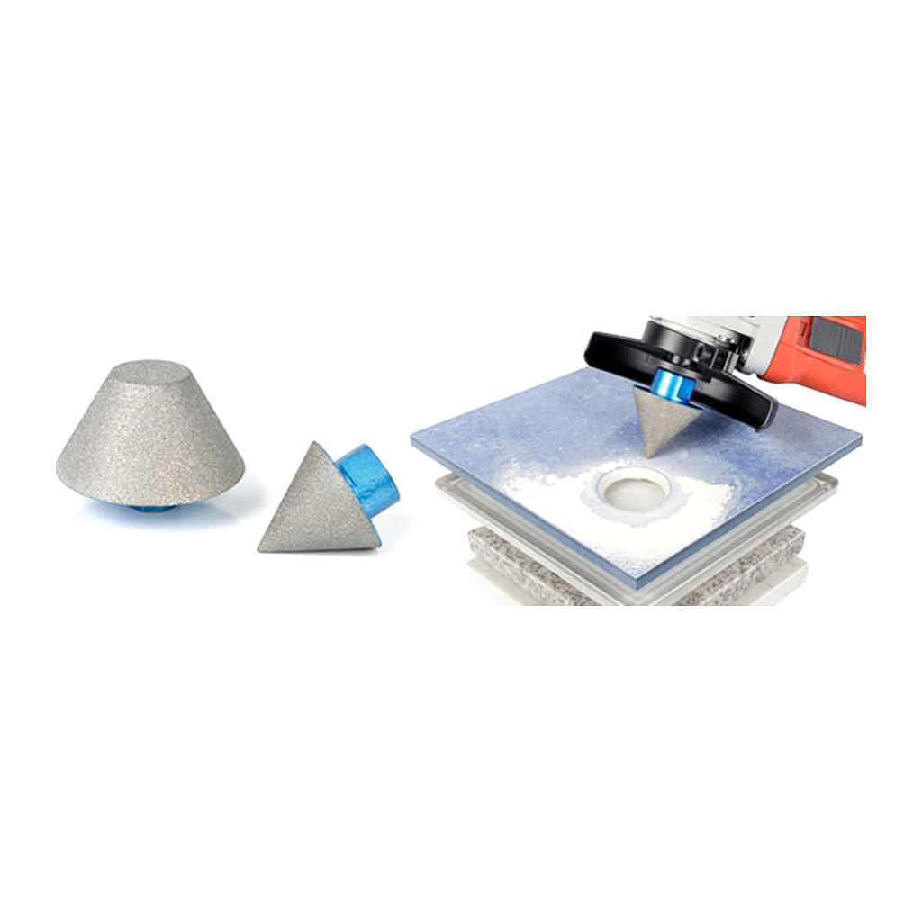 Rychlé zvětšení a začištění otvoru do tvrdé dlažby, keramika, skla, obkladu a kamene. Za sucha. Průměr 0-35 mm. Ideální pomocník pro obkladače, elektrikáře a instalatéry. Do úhlové brusky. Diamantová kuželová fréza FPS35 s velmi jemným diamantem je určena pro začištění a zvětšování otvorů do tvrdých materiálů, ale i obkladů s křehkou glazurou a do skla. Upevňuje se přímo do úhlové brusky. Diamantová zrna jsou nanesena po celé kuželové ploše. Speciální jemný diamantový prstenec zajišťuje začištění otvoru a fréza může být použita i pro zvětšování již vyvrtaného otvoru. Pouze na zvětšování otvoru doporučujeme použít frézu FPU20. Snižuje riziko reklamace prasklé dlaždice po pokládce!!! Začištěním vyvrtaného otvoru dochází ke zmenšení pnutí na povrchu dlaždice a tím se snižuje nebezpečí prasknutí dlaždice, ke kterému může dojít až po určitém čase až po jejím položení!!!! Jedná se o časté závady u pokládky. POZOR!!! Fréza není určena na vyvrtávání otvorů, ale na zabroušení, začištění a zvětšování již vyvrtaných otvorů. Pro zvýšení životnosti se doporučuje korunku při frézování ochlazovat ponořením do studené vody. Pozor! Korunka po obroušení diamantu nevrtá, i když stále vypadá jako nová!! Na videu můžete vidět použití fréz FPS.