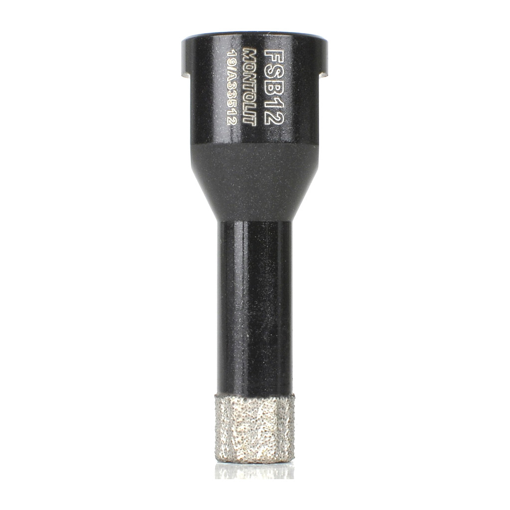 Rychlé vrtání za sucha i mokra do tvrdých obkladových materiálů. Tvrdá dlažba, keramika, kámen. Průměr 12 mm. Ideální pomocník pro obkladače, elektrikáře a instalatéry. Do úhlové brusky. Korunky jsou určeny na rychlé vrtání do tvrdých materiálů. Upevňují se přímo do úhlové brusky. Korunka FSB 12 ve verzi Black od italského výrobce Montolit je ekonomickou verzí korunky Mondrillo FS12. Pro urychlení vrtání a zvýšení životnosti se doporučuje korunky při vrtání ochlazovat ponořením do studené vody nebo chladícího gelu M-PERFOMER. POZOR!! Pro docílení uvedené životnosti korunky je nezbytné po celou dobu vrtat krouživým pohybem, aby nedošlo k rychlému opotřebení diamantu na hraně prstence. Nevrtat kolmo jako s běžným vrtákem!!!!!! Pozor! Korunka po obroušení diamantu nevrtá, i když stále vypadá jako nová!! Na přiloženém videu je možné shlédnout pracovní postupy pro vrtání.