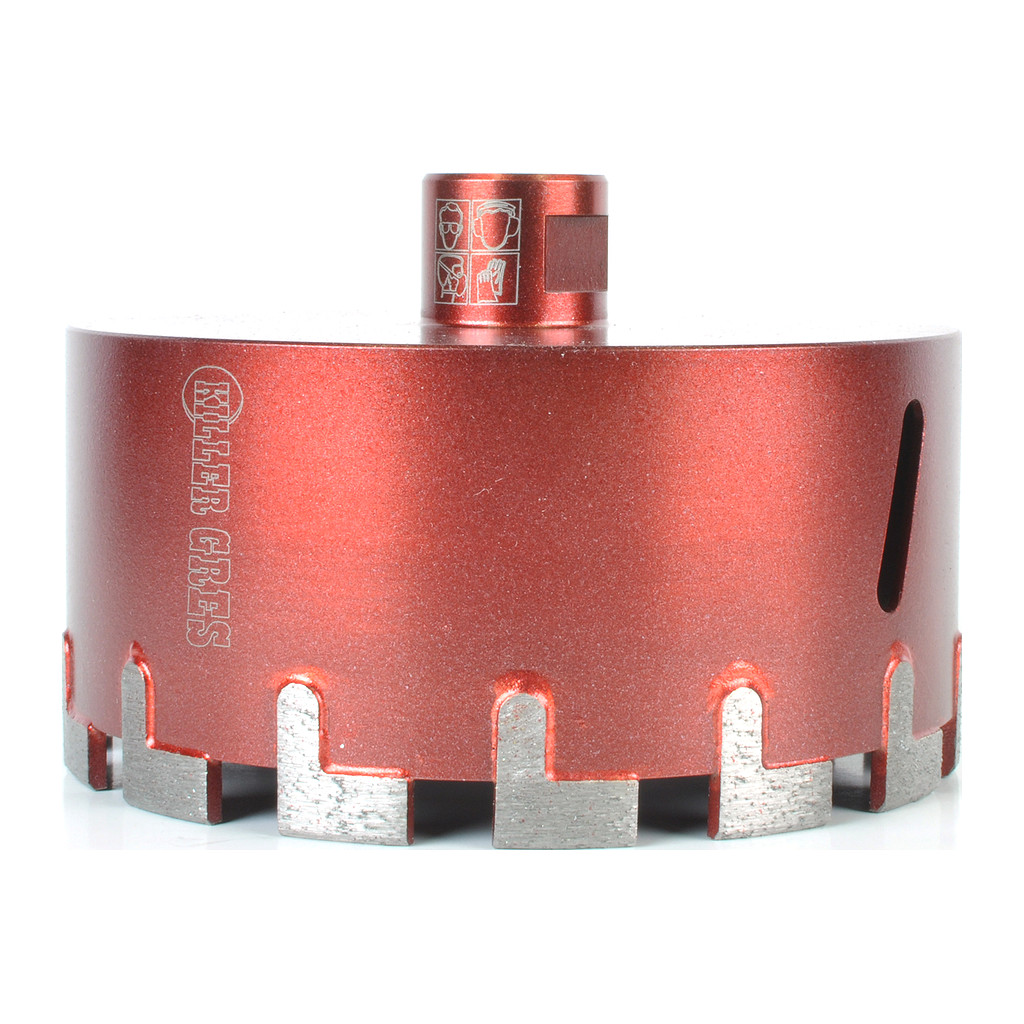 Diamantová korunka do úhlové brusky pro vrtání do extrémně tvrdých materiálů za sucha. Tvrdá dlažba, keramika, kámen. Průměr 120 mm. Korunky jsou určeny pro nejrychlejší vrtání nejenom do extrémně tvrdých materiálů, ale i do běžných obkladů a dlažby. Vysoký diamantový prstenec zajišťuje dlouhou životnost. Diamantový segment je protažen až 1 cm do těla korunky, aby byla zajištěna dostatečná pevnost při vysokých otáčkách úhlové brusky. U koruky FT-S 120 je nutné použít úhlovou brusku s regulací otáček (max. 4000 RPM). Korunky FT-S nejsou vhodné pro vrtání do mramoru. Pro očištění diamantového prstence výrobce doporučuje používat čístící brus 395B nebo 395BJ. Nanásledujícíh videí je možné shlédnout pracovní postupy pro vrtání.