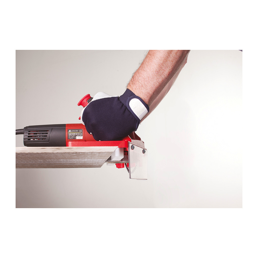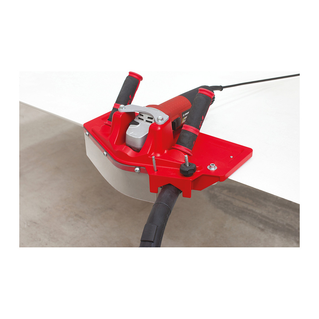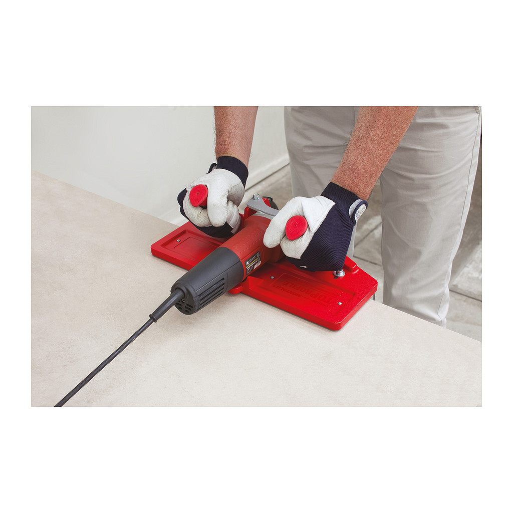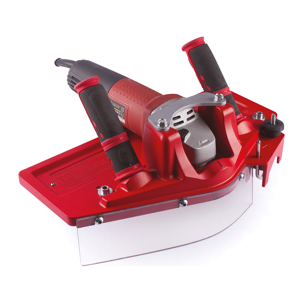 Profilovací fréza TOPROFILE na zabrušování hran kamenických rohů pod úhelem 45º (jolly). Jednoduše a rychle zbrousíte hranu dlažby pod úhlem 45º (kamenický roh, jolly) bez nutnosti chlazení vodou. Profilovací frézu TOPROFILE je možné připojit na stavební vysavač (není součástí produktu), který odsaje většinu prachu z broušeného materiálu. Připojení vysavače je důležité i pro zajištění chlazení kotouče a tím zvýšení jeho životnosti. Pracovní plochy, které se posouvají po broušené dlažbě, jsou vyrobeny z bílého plastu a nezanechávají stopy na glazuře. Fréza TOPROFILE nahradila staší model SUPERPROFILE. Vylepšení oproti staršímu modelu jsou: tělo z hlikového odlitku ergonomicky umístěné rukojeti pro lepší držení přepravní obal nastavitelné uchycení vysavače (pro různé velikosti) výměnné pracovní plochy lepší chlazení kotouče FPE15TP díky spirálovým drážkám Vhodné také pro zaoblení hran keramických, kamenných a velkoformátových desek. Mramorové nebo žulové kuchyňské a koupelnové linky, schodišťové stupně, okenní parapety nebo různé sokly. Profilovací fréza TOPROFILE je určena především pro velkoformátové dlažby, které mají menší tloušťky (3-7 mm). Frézování klasických dlažeb (tl. 8 – 15 mm) je časově delší a životnost diamantového kotouče se snižuje rychleji. Balení obsahuje základní brusný kotouč FPE 15 TP, který je určen pro broušení pod úhlem 45º. Lze dokoupit kotouč FPE15TPGF, který má jemnější složení diamantového prstence. Také je možné dokoupit brusné kotouče pro zabroušení hran vrchní hrany dlažby pro schodišťové stupně, sokly, …. Kotouč FPE03TP pro zabroušení pod úhlem 45º do hloubky 3 mm. Kotouč FPE05TP pro zabroušení pod úhlem 45º do hloubky 5 mm. Kotouč FPB03TP pro zabroušení do rádiem o poloměru 3 mm. Kotouč FPB05TP pro zabroušení do rádiem o poloměru 5 mm. Kotouč FPB10TP pro zabroušení do rádiem o poloměru 10 mm. Postup zabrušování lze shlédnout na přiloženém videu.
