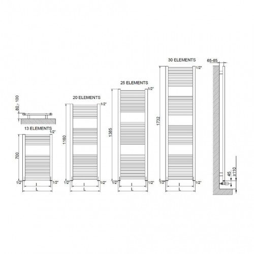 • Vodorovné vykurovacie telesá z lakovanej mäkkej ocele Ø 22 mm