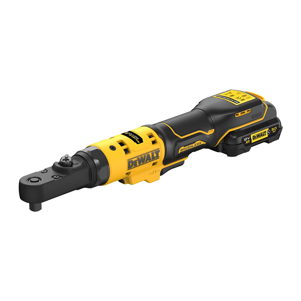 AKU račňa s výmennou hlavou, 12V, XR®, bezuhlíková, 1/4″ a 3/8″, 75Nm, 2× AKU 3,0Ah, GFN kryt
