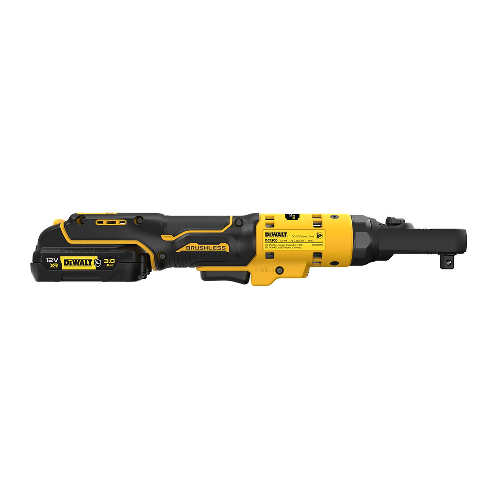 DeWALT DCF500L2G – AKU račňa s výmennou hlavou, 12V, XR®, bezuhlíková, 1/4″ a 3/8″, 75Nm, 2× AKU 3,0Ah, GFN kryt