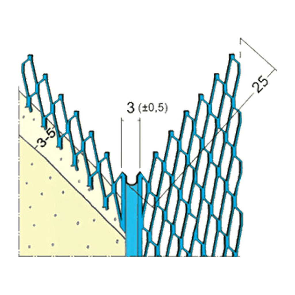 Rohový profil pre vnútorné omietky s tenkou guľatou hlavou 3 mm, hranou 28 mm. Vhodný pre sadrové alebo cementové omietky.