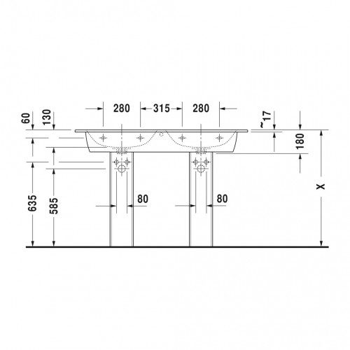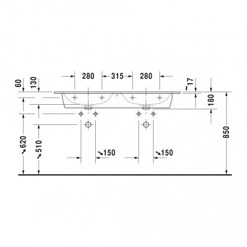 Domov » Sanita » Kúpeľne » Umývadlá » Dvojumývadlá » Duravit ME by Starck – Dvojumývadlo do nábytku 1300×490 mm, s prepadom, biela 2336130000