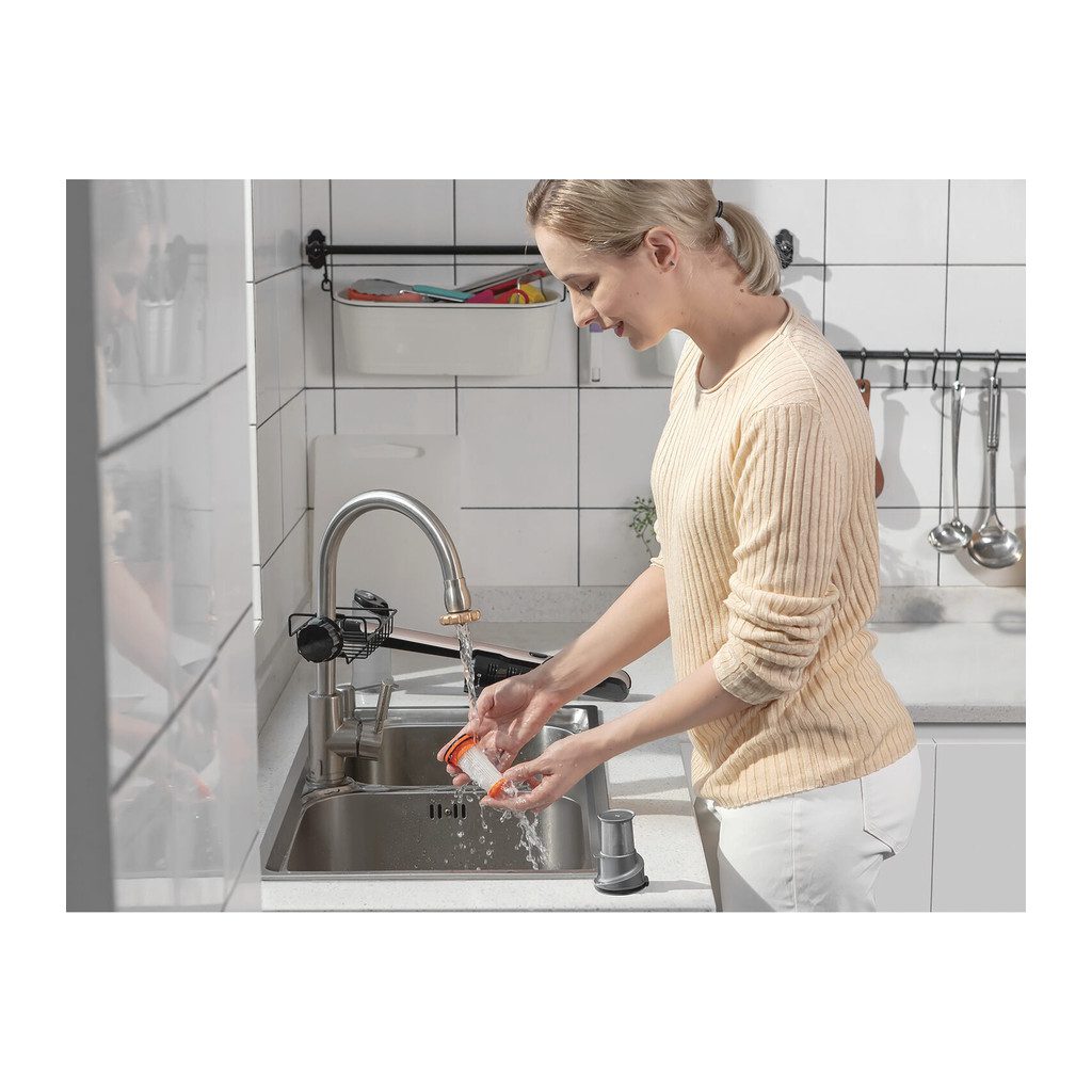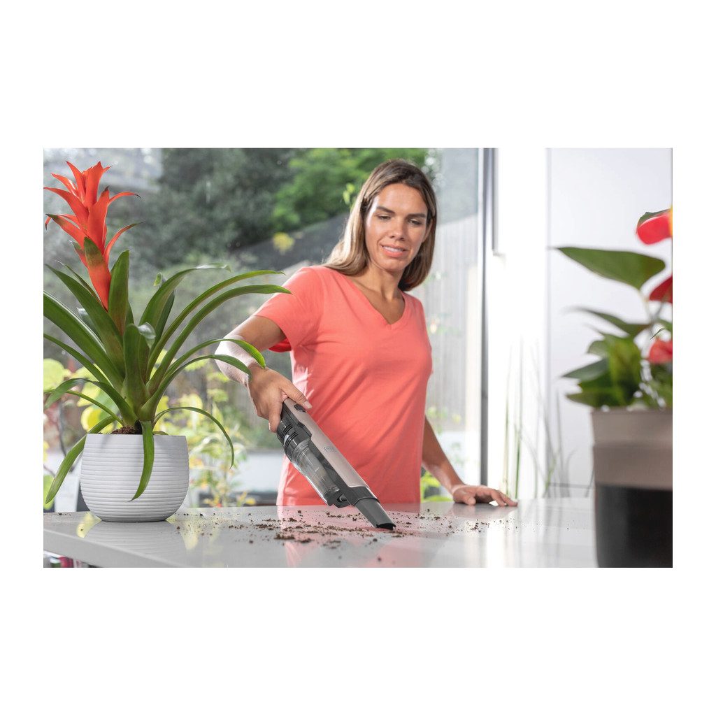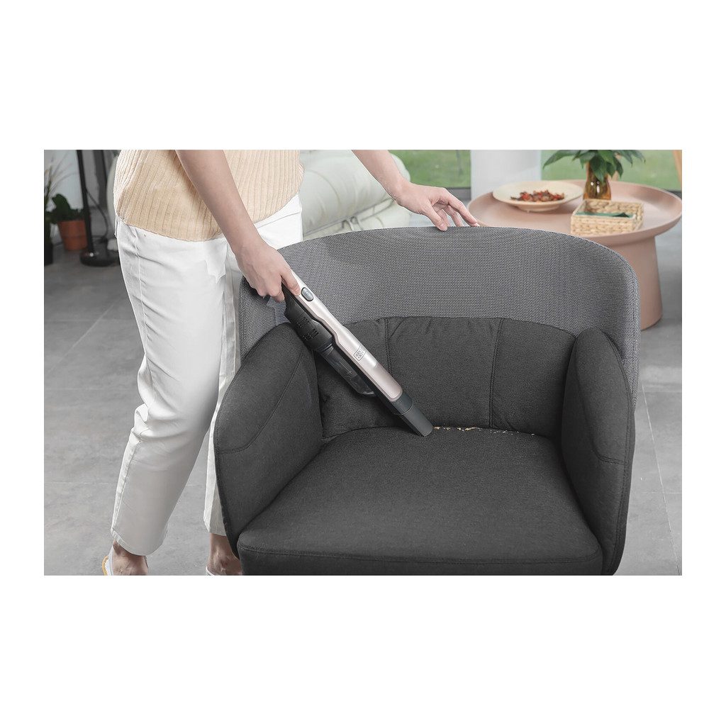 Aku ručný vysávač BLACK+DECKER je tichý. Vysáva dôkladne s dlhšou dobou chodu bez straty výkonu. Tenký, ergonomický dizajn ponúka jednoduchú manipuláciu s maximálnym komfortom a je ideálny na čistenie ťažko dostupných miest. 2 úrovne sania vám umožňujú prispôsobiť sací výkon vašim úlohám – nízka úroveň na odstraňovanie nečistôt v každodennom živote a vysoká úroveň na odstraňovanie odolných nečistôt. Priehľadná nádoba na nečistoty ponúka jednoduché vyprázdnenie stlačením tlačidla, aby sa zabránilo kontaktu s nečistotami. Jednoduché čistenie filtrov zaisťuje nepretržitý maximálny výkon.