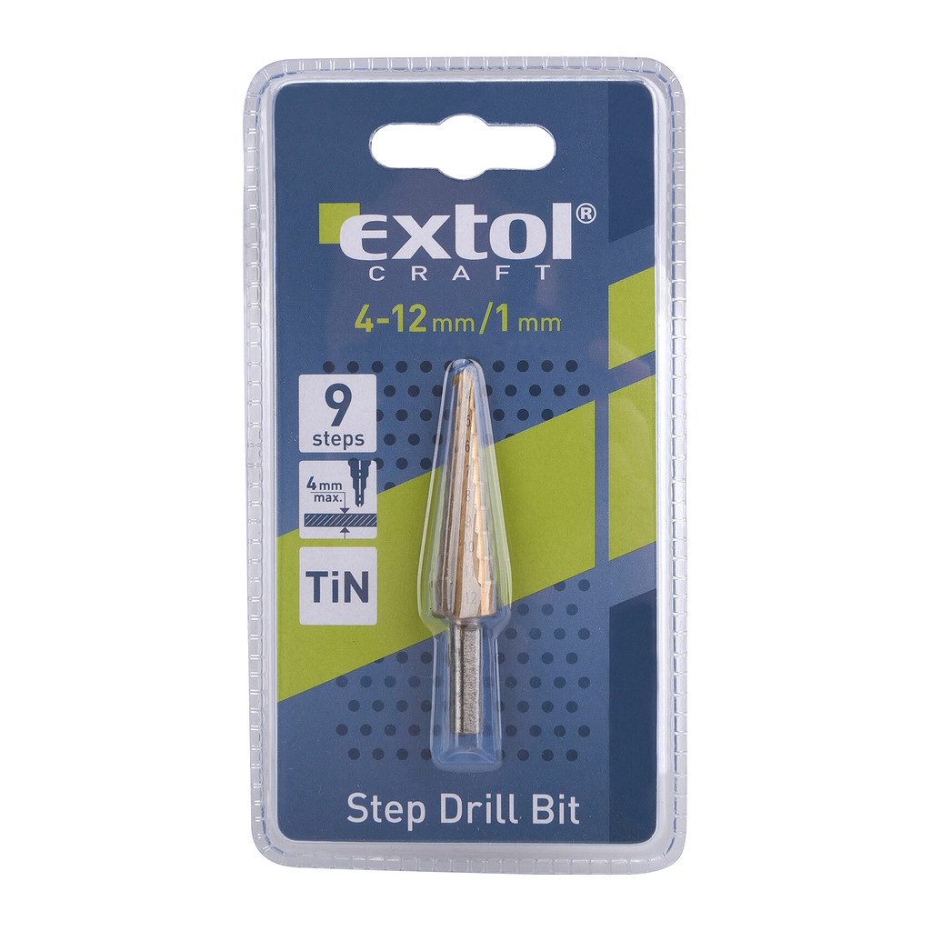 Domov » Náradie » Príslušenstvo » Vrtáky a sekáče » Multimateriálové vrtáky » Stupňovité vrtáky » Stupňovité vrtáky TIN » Extol Craft 20051 – Vrták stupňovitý TiN, Ø4-12mm, stupňovanie 1mm, 9 otvorov