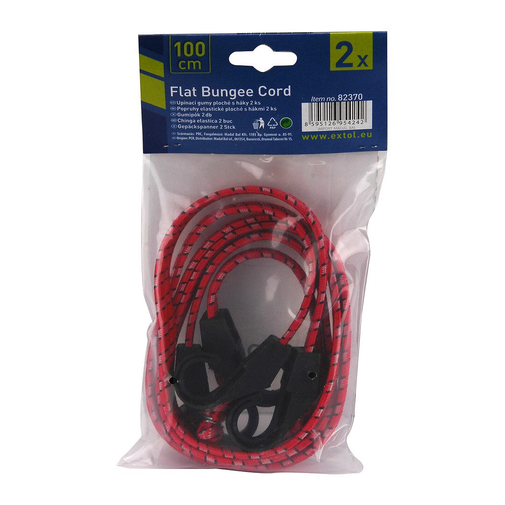 Extol Craft 82370 – Popruh elastický plochý, 100cm x 14mm, 2ks, plastové háky