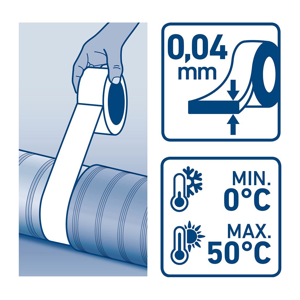 vysoko odolná proti starnutiu, tepelnému a UV žiareniu, paravzdorná, na spájanie a obaľovanie izolačných materiálov, klimatizačných či ventilačných jednotiek a pod.