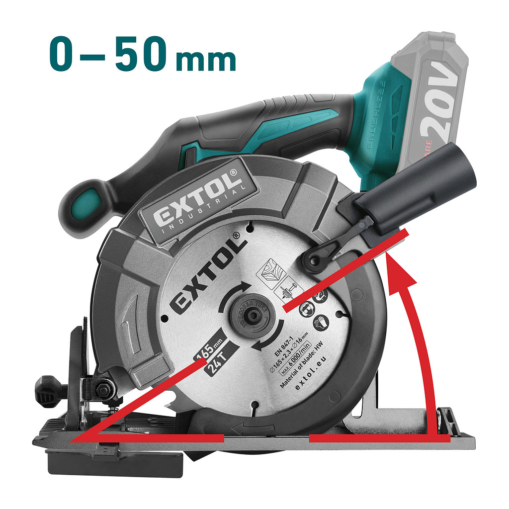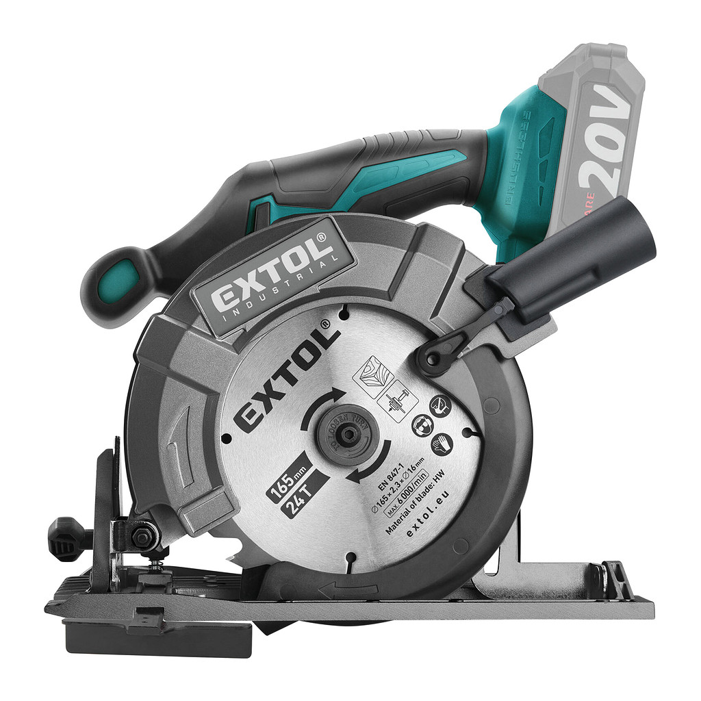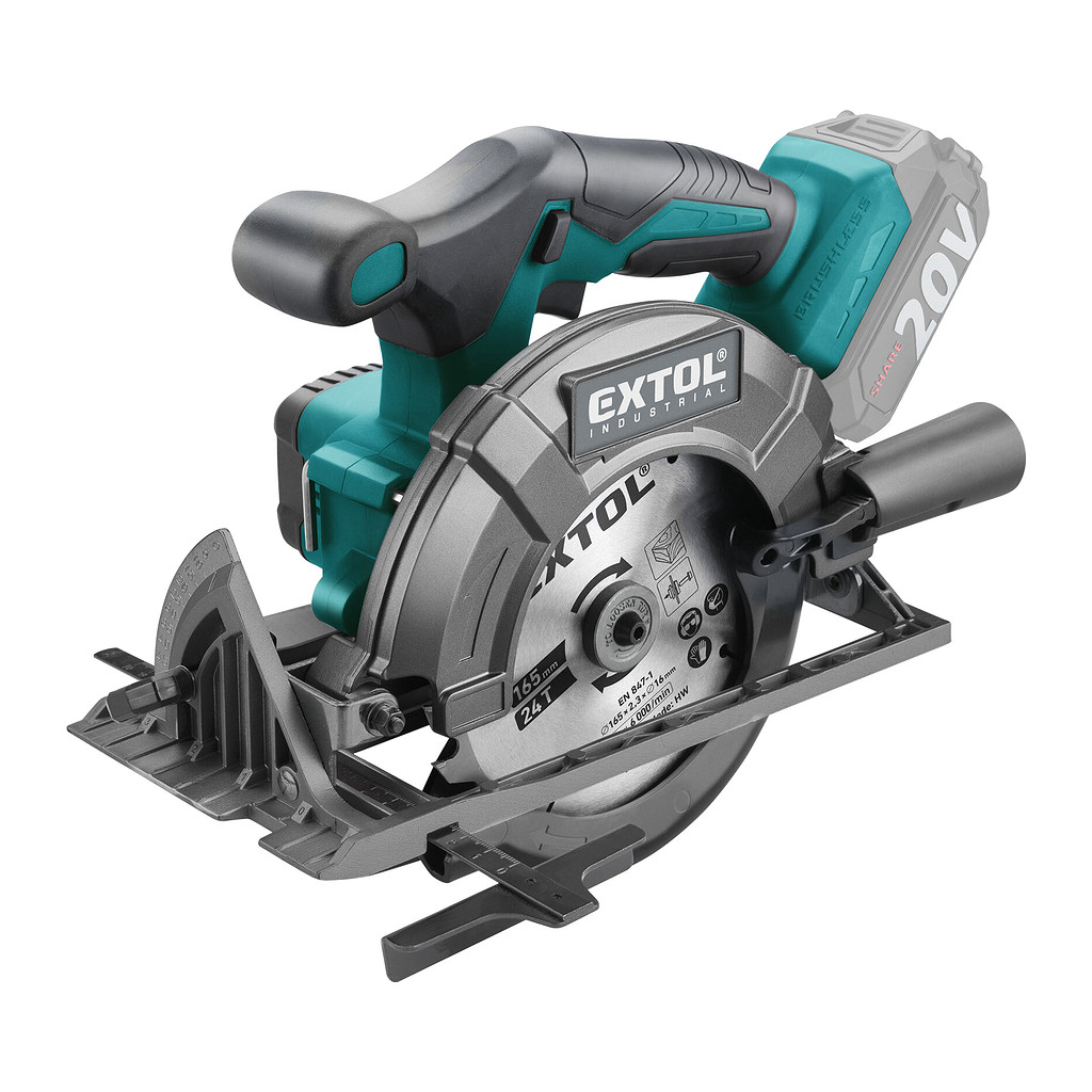 Bezuhlíková kotúčová píla je navrhnutá tak, aby užívateľom poskytla výkonné a ľahké rezanie pri rôznych inštalatérskych, elektrikárskych, rámovacích, dokončovacích a tesárskych prácach. Píla poháňaná najmodernejším „brushless“ motorom s 3650 ot./min umožňuje používateľovi rýchlo a ľahko rezať tvrdý materiál. Tento nový typ motora má vyššiu životnosť, je výkonnejší a má menšiu spotrebu energie ako klasické motory s uhlíkmi. Horný a spodný kovový ochranný kryt poskytujú výbornú ochranu kotúča pri páde. Gumová mäkká rukoväť je ergonomicky navrhnutá tak, aby užívateľovi poskytovala vynikajúce pohodlie a vyváženie pre ľahko ovládateľné rezy. Pre bežnú prácu postačujú jeden alebo dva 2000mAh akumulátory, ktoré môžete rýchlo nabiť v rýchlonabíjačke. Pre náročnejšie alebo dlhšie práce odporúčame väčšie akumulátory s kapacitou 4000mAh. Akumulátory je možné použiť vo všetkých typoch náradia radu EXTOL Share20V a vďaka Li-ion technológii je možné ich kedykoľvek dobíjať, bez toho aby sa tým znižovala ich kapacita alebo životnosť. Li-ion akumulátory strácajú energiu vplyvom samovybíjania veľmi pomaly a vydržia dlho nabité a pripravené na použitie.