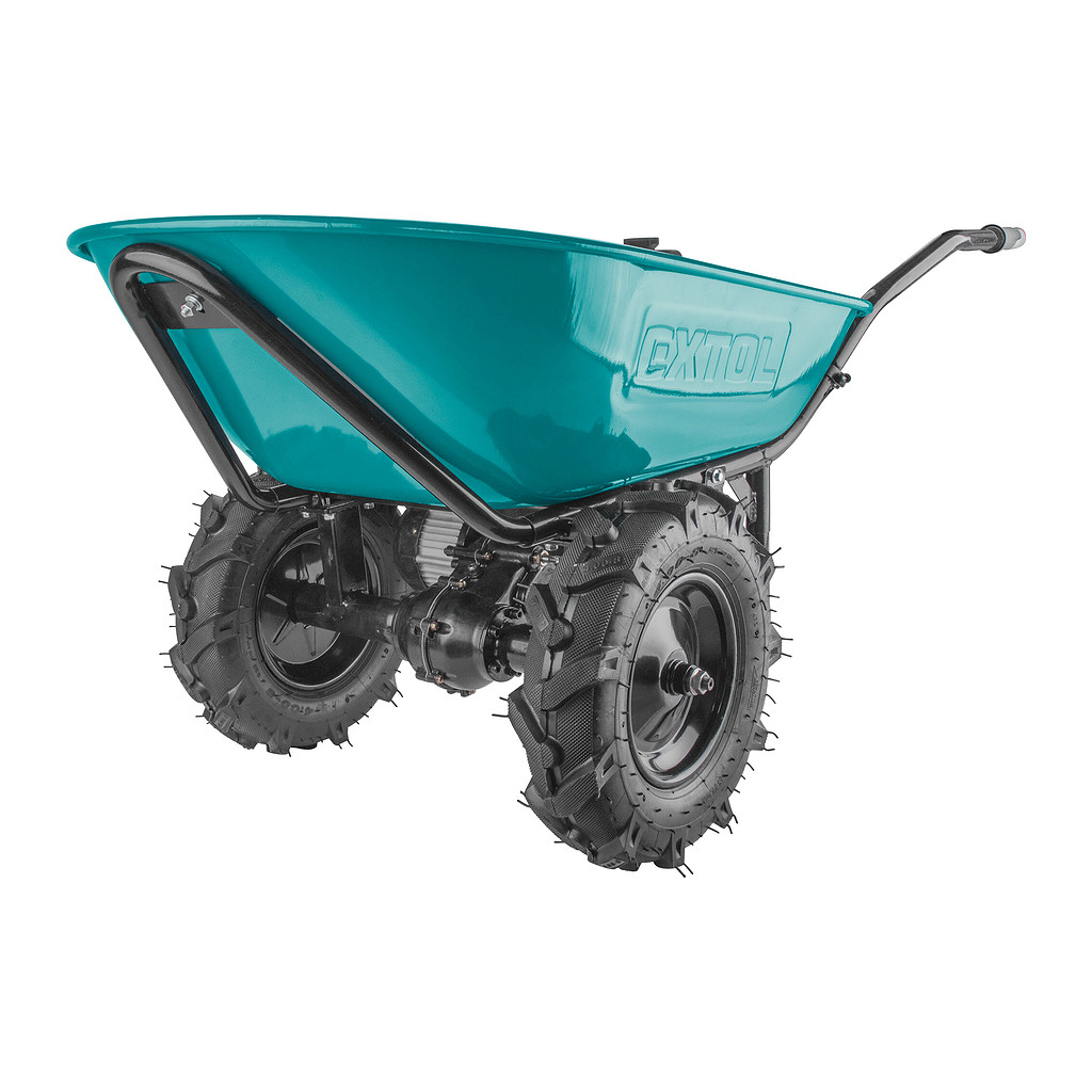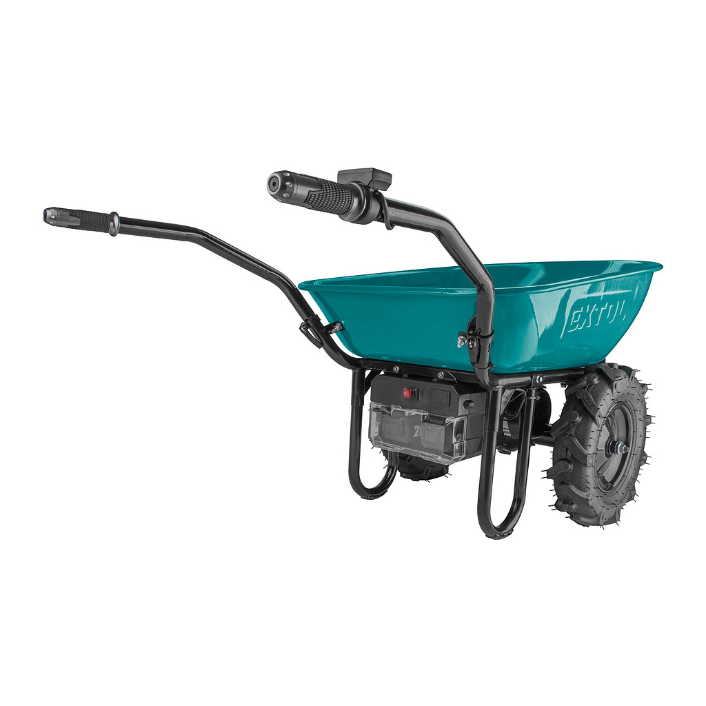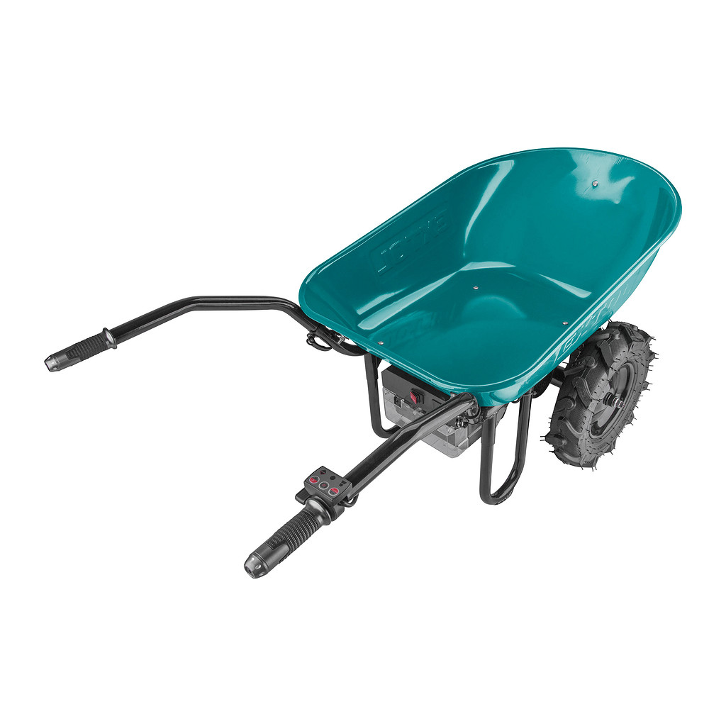 Dvojkolesový fúrik je určený na prepravu tuhých, sypkých alebo hustých materiálov. Elektrický pohon podstatne urýchľuje prepravu a zároveň znižuje únavu počas obsluhy, čo zvyšuje produktivitu práce. Použitie Li-ion batérie výrazne znižuje hmotnosť fúrika oproti modelom, ktoré sú poháňané olovenými batériami. Na pravej rukoväti sa nachádza ovládač, kde je možné pomocou palca nastaviť okamžitú rýchlosť pohybu, voliť jazdu dopredu alebo dozadu, aktivovať brzdu, normálnu alebo Turbo rýchlosť. Pre bežnú prevádzku sa používa normálna rýchlosť, Turbo je možné použiť pri jazde do kopca, v ťažkom teréne alebo pri preprave ťažšieho nákladu. Fúrik je poháňaný najmodernejším bezuhlíkovým 40V motorom. Tento nový typ motora má vyššiu životnosť, je výkonnejší a má menšiu spotrebu elektrickej energie ako klasické motory s uhlíkovými kefami. Ak je to nutné, je možné motor kompletne vypnúť a používať fúrik len na ručný pohon. Zabudovaná prevodovka s diferenciálom výrazne zlepšuje priestupnosť terénom a výkon motora pri jazde do kopca. Vďaka umiestneniu ťažiska nákladu nad osou kolies je väčšina hmotnosti nákladu umiestnená na kolesách a obsluha takmer nič nenesie. Elektrická brzda sa používa ak je potrebné zamedziť pohybu fúrika na mieste. Kolesá s hlbokou vzorkou do terénu poskytujú dobrú trakciu. Fúrik je dodávaný s kovovou korbou s objemom 100l, lisovanou z jedného kusa plechu. Pre prepravu pevného objemnejšieho nákladu (napr. krabice, polená…) je možné dokúpiť rámovú konštrukciu, ktorá sa priskrutkuje namiesto korby. Elektronika fúrika má krytie IP64, čo mu umožňuje dočasnú prácu vo vlhkom prostredí, prípadne umývanie prúdom vody, nie je ale určený na trvalú prevádzku alebo skladovanie vo vlhkom prostredí. Pre jednoduchšiu prepravu v aute je možné sklopiť rúčky, takže sa fúrik zmestí aj do menšieho auta. Zdrojom elektrickej energie sú silné Share20V akumulátory, ktoré sa predávajú samostatne. Z dôvodu vysokého odberu je nutné použiť 6Ah alebo 8Ah verziu. Výhodou použitia Share20V akumulátorov je, že keď fúrik nepoužívate, môžete ich tiež používať v našom neustále rozširujúcom sa sortimente náradia používajúceho rovnaký typ akumulátora. Vyberateľné batérie umožňujú ich ľahké nabíjanie a skladovanie v suchom a zateplenom prostredí, čo je veľmi dôležité pre ich životnosť. Batérie majú ochranu proti vybitiu pod minimálnu úroveň, pred preťažením pri nadmernom odbere prúdu, prebitím, skratom a náhlemu zvýšeniu teploty pri práci.