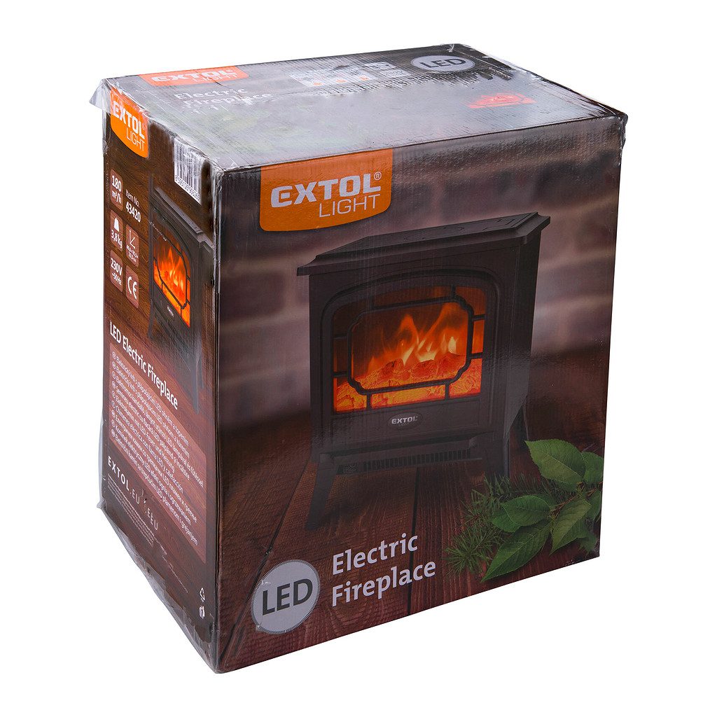 Extol Light 43421 – Krb svetelný s vyhrievaním, 900W/1800W, efekt plameňa, 55x53x29cm
