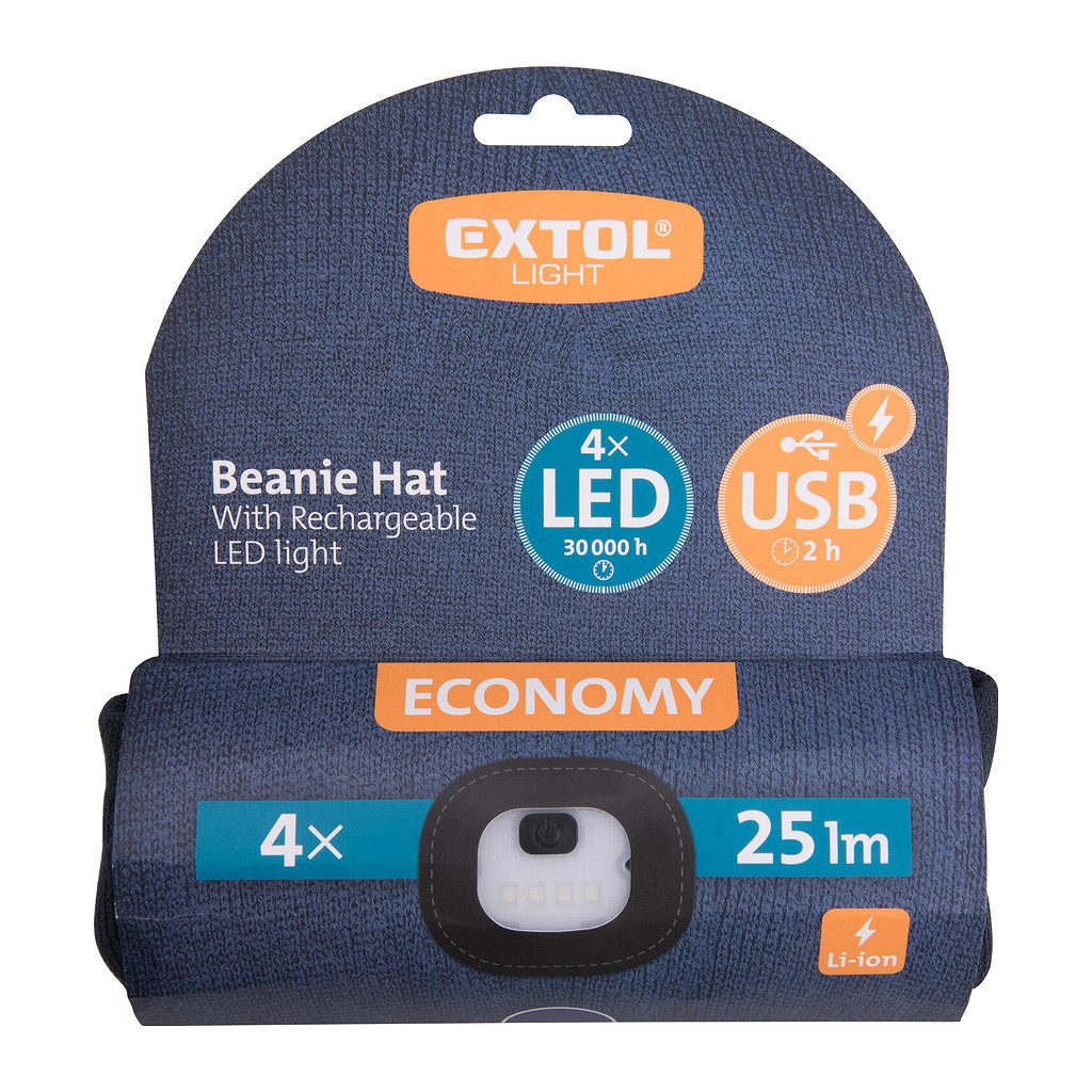 Domov » Náradie » Aku náradie » Svietidlá » Čiapky » Extol Light 43456 – Čiapka tmavo-modrá s čelovým svetlom, LED 4x25lm, 250mAh Li-ion, nabíjanie cez USB