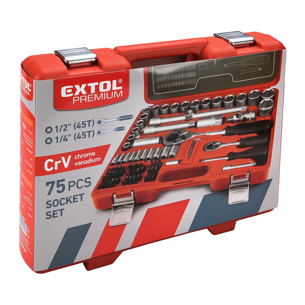 Domov » Náradie » Ručné náradie » Račne, hlavice a kľúče » Gola sady » Extol Premium 6521 – Sada nástrčných kľúčov, 75-dielna