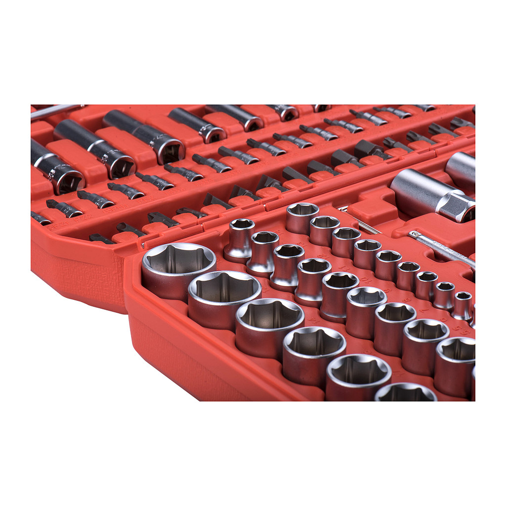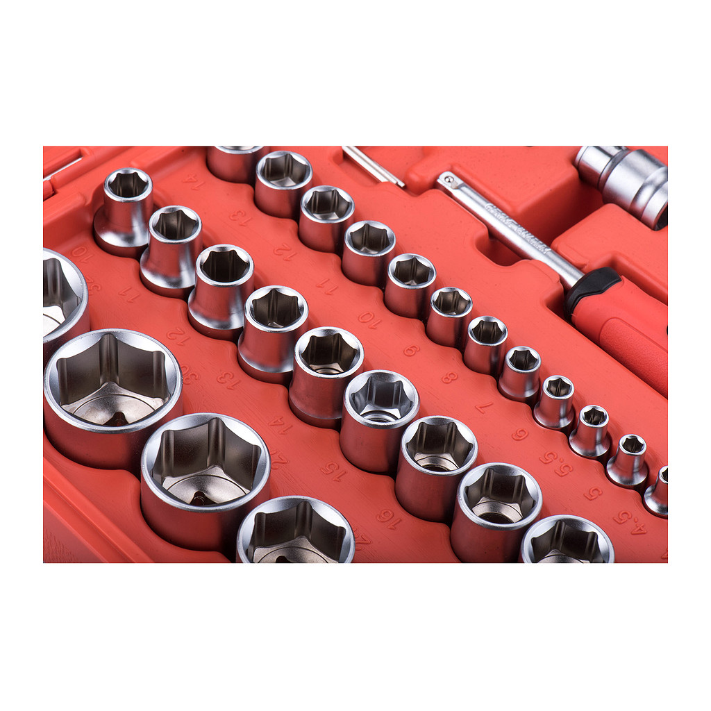 • Hlavice nástrčné: 1/4″: 4-4,5-5-5,5-6-7-8-9-10-11-12-13-14mm, 1/2″: 10-11-12-13-14-15-16-17-18-19-20-21-22-23-24-27-30-32mm