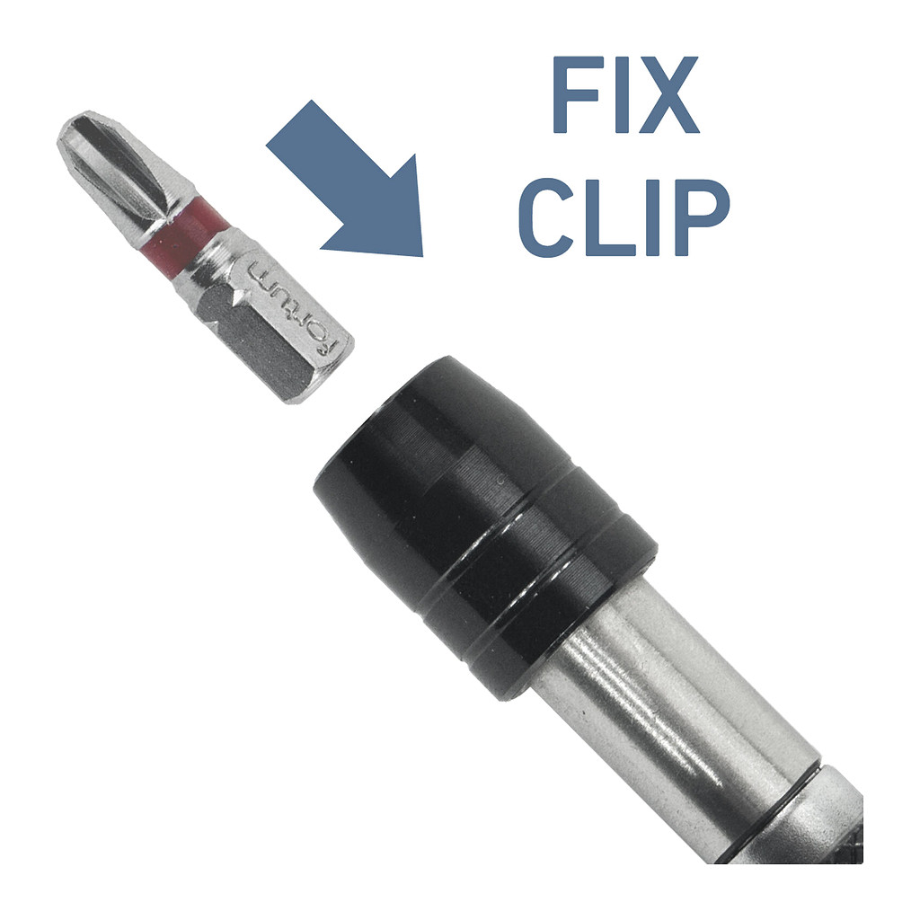 • mechanizmus Fix-Clip zabezpečí, že hrot sa po zatlačení do držiaka pevne zafixuje a na uvoľnenie stačí zatlačiť vonkajší prstenec smerom k rukoväti a hrot vytiahnúť