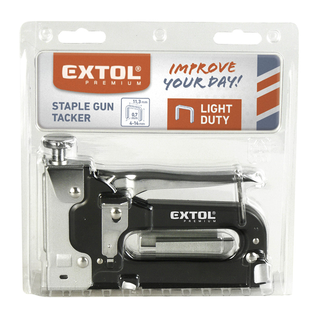 Domov » Náradie » Ručné náradie » Sponkovacie kladivá a kliešte » Sponkovacie kliešte » Extol Premium 8851100 – Pištoľ sponkovacia, dĺžka spony 4-14mm, hrúbka spony 0,7mm