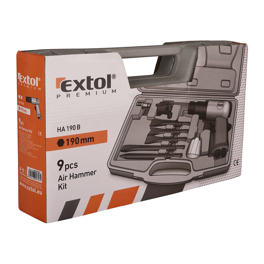 Domov » Náradie » Pneumatické náradie » Vŕtacie a búracie kladivá » Extol Premium 8865003 – Kladivo sekacie pneumatické s príslušenstvom, 9-dielna sada