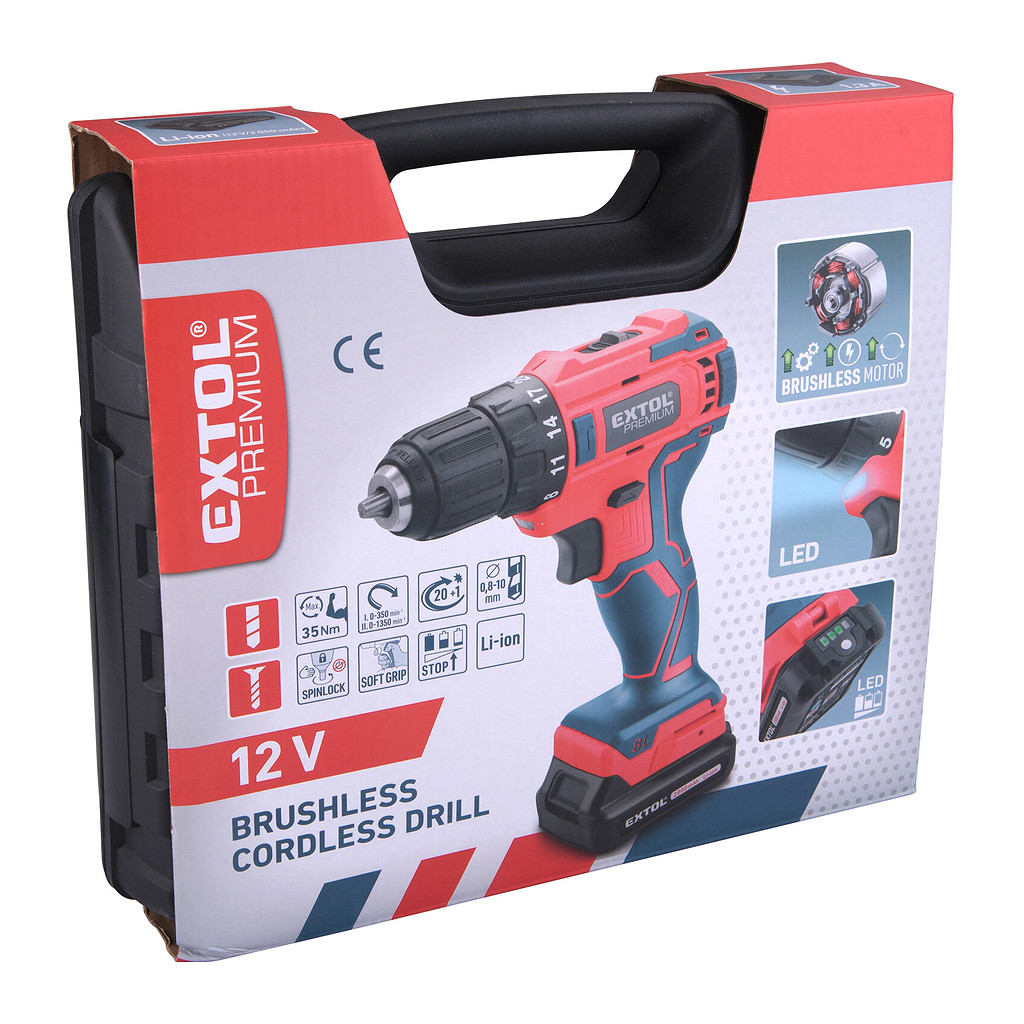 Domov » Náradie » Aku náradie » Vŕtačky a skrutkovače » Vŕtačky / skrutkovače » Extol Premium 8891152 – Vŕtačka akumulátorová, bezuhlíkový motor, 12V, 1x2Ah Li-ion