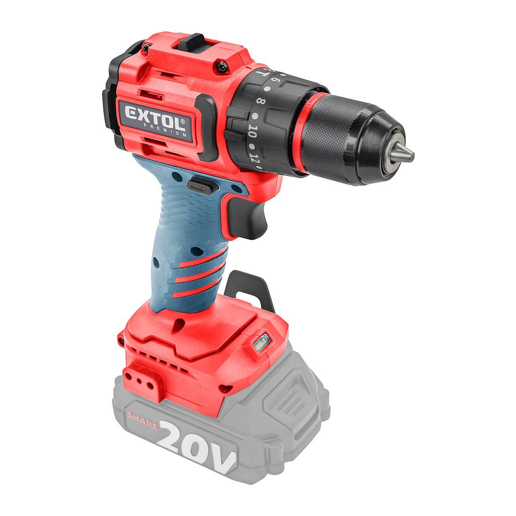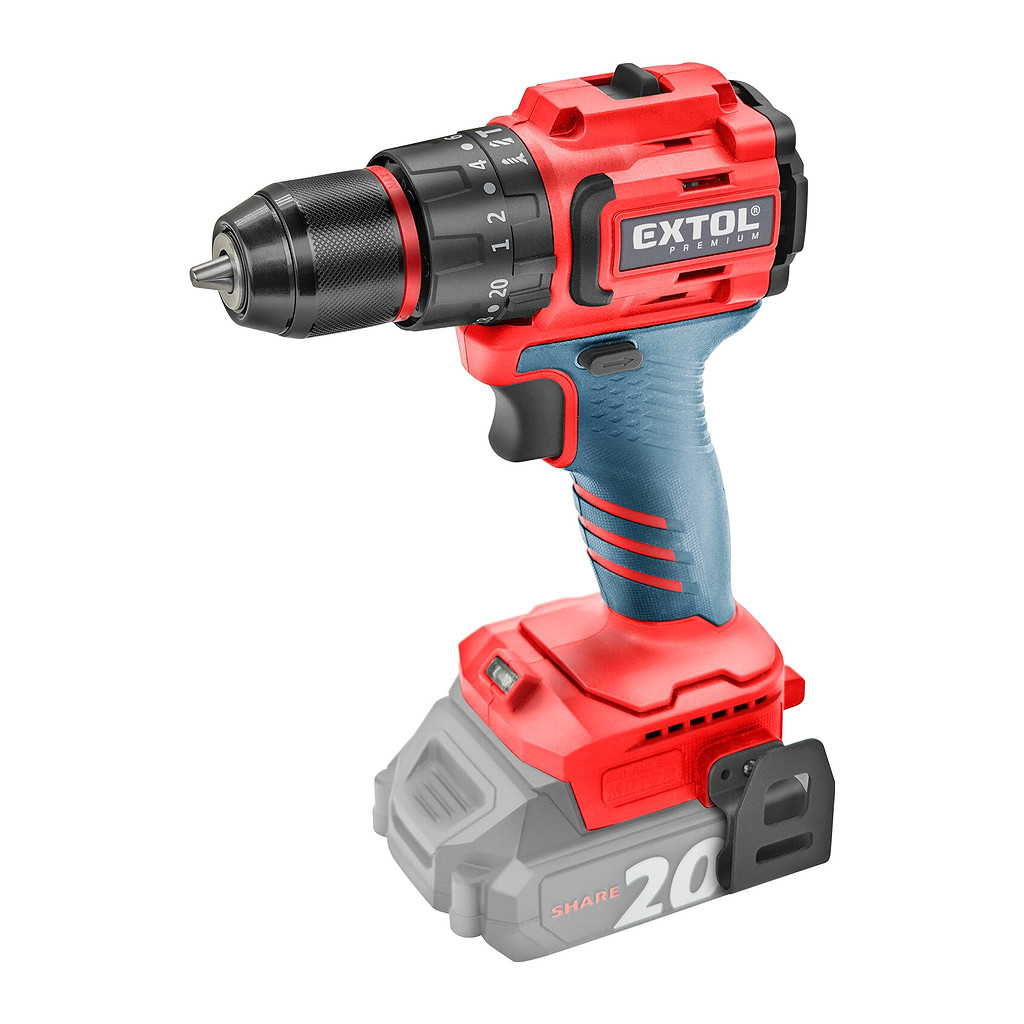 Domov » EXTOL PREMIUM 8891807 – Vŕtačka s príklepom aku kompaktná Share20V, bez aku, 50Nm, bezuhlíkový motor