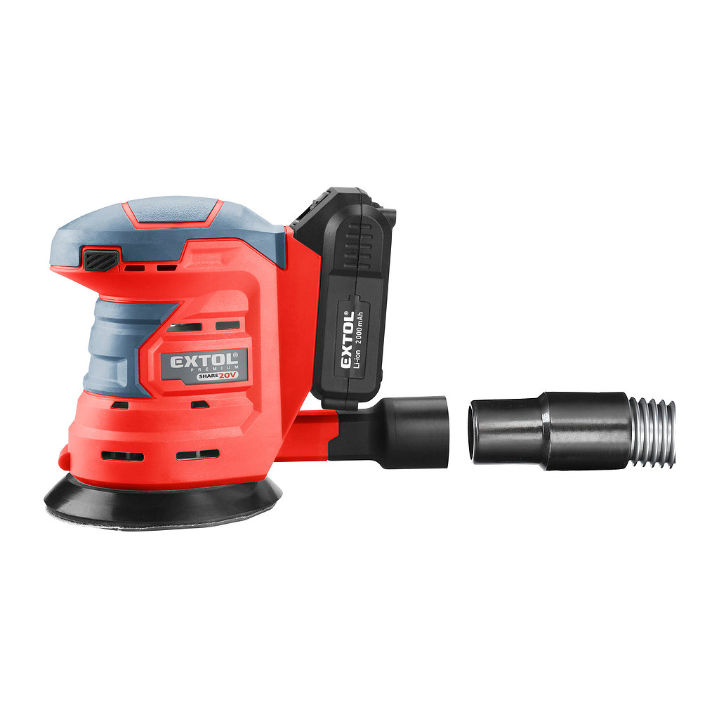 Domov » Náradie » Aku náradie » Brúsky, hoblíky, frézky » Brúsky » Vibračné a excentrické brúsky » Extol Premium 8891846 – Brúska excentrická aku Share20V, 1x akumulátor 2Ah Li-ion, 125mm