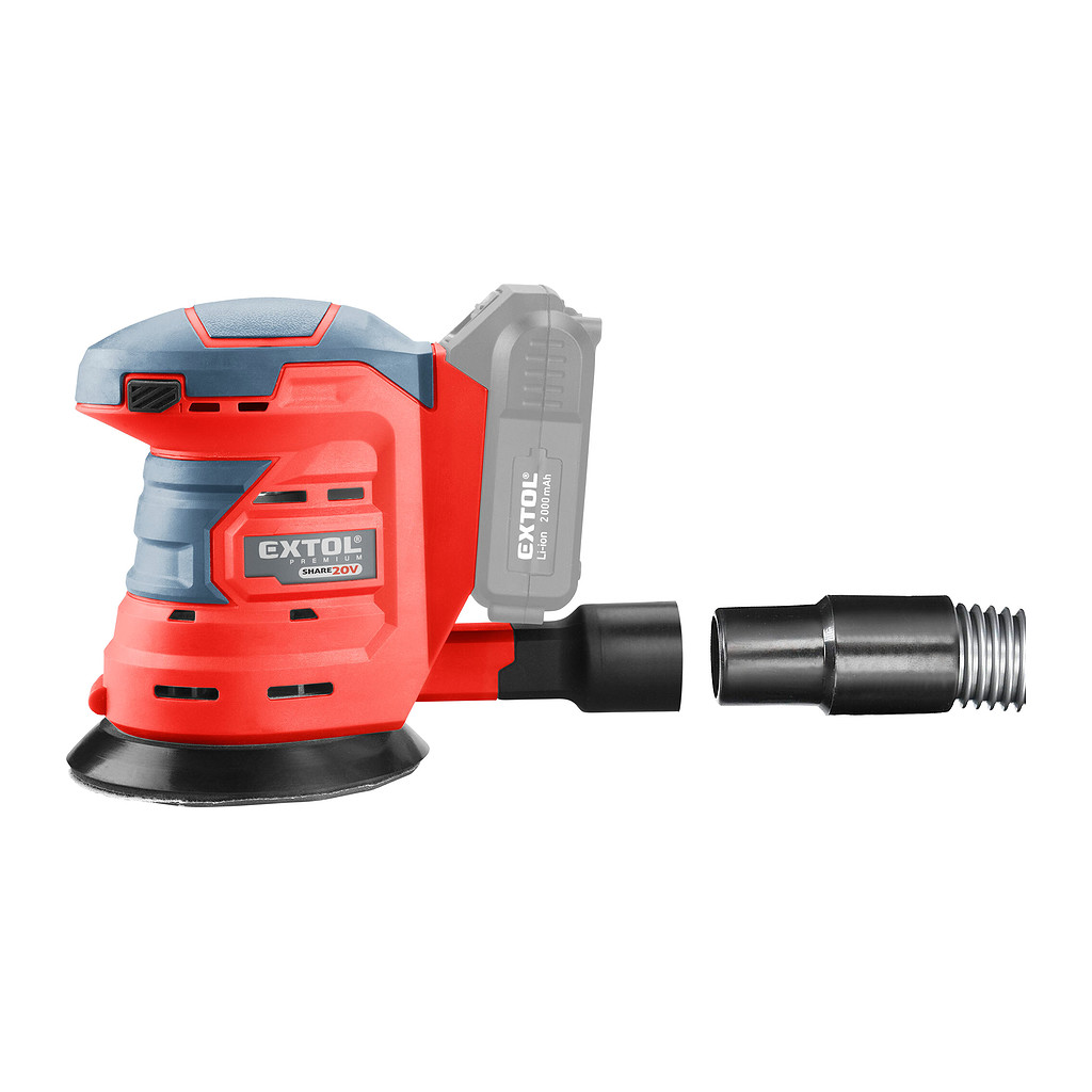 Domov » Náradie » Aku náradie » Brúsky, hoblíky, frézky » Brúsky » Vibračné a excentrické brúsky » Extol Premium 8891847 – Brúska excentrická aku Share20V, bez aku a nabíjačky, 125mm