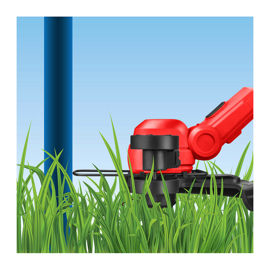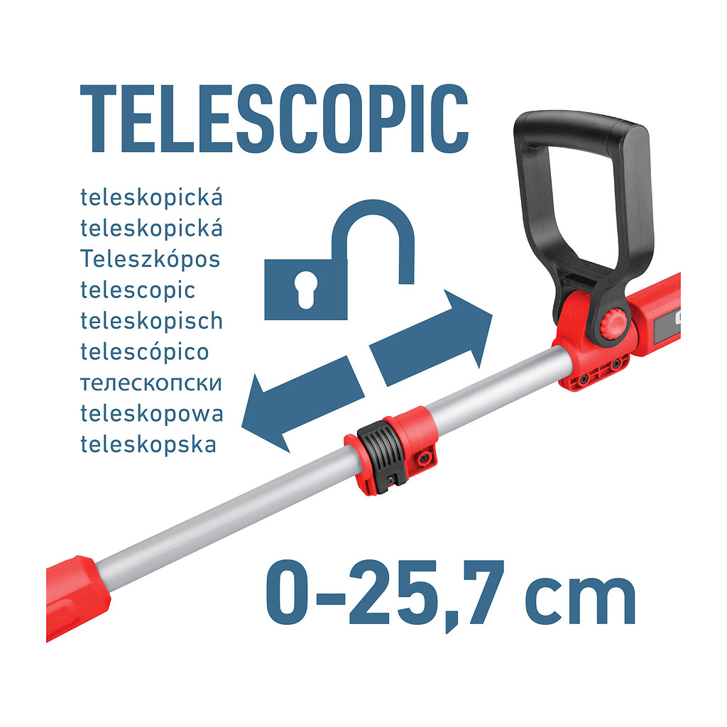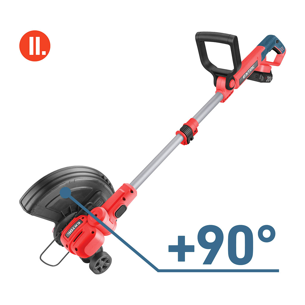 Strunová akumulátorová kosačka je ideálna na pravidelnú údržbu záhradného trávnika, precízne zarovnanie okrajov a kosenie v ťažko dostupných miestach, napr. pri obrubníkoch, pod lavičkami či okolo stromov a kríkov. Na kosačke je možné nastaviť uhol žacej hlavy a tiež ju otočiť o 90° kolmo k zemi, čo uľahčuje kosenie pri okrajoch trávnikov, pozdĺž chodníkov, príjazdových ciest a pod.Teleskopická rukoväť sa dá predĺžiť až o 23 cm, aby sa kosačka prispôsobila používateľom rôznych výšok a umožnila pohodlnú prácu. Strunu môžete predĺžiť dvoma spôsobmi – manuálne stlačením tlačidla na žacej hlave alebo jednoducho poklepom o zem počas práce. Ochranný kryt so zabudovaným nožom navyše automaticky oreže strunu na optimálnu dĺžku. Kosenie pozdĺž plotov, múrov či stromov uľahčuje praktický sklopiteľný dištančný oblúk, ktorý zároveň chráni sekaciu strunu pred nadmerným opotrebením.Napájanie z batérie eliminuje starosti s napájacím káblom, kosačka je tak ľahšia, tichšia a manipulácia s ňou je podstatne pohodlnejšia. Pogumovaná rukoväť zabraňuje vyšmyknutiu, tlmí vibrácie a zvyšuje komfort pri držaní.