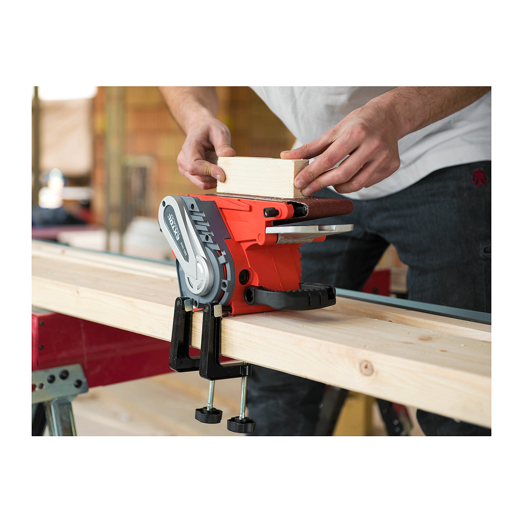 • vďaka praktickým svorkám v príslušenstve môžete brúsku pripevniť na pracovnú dosku pásom dohora