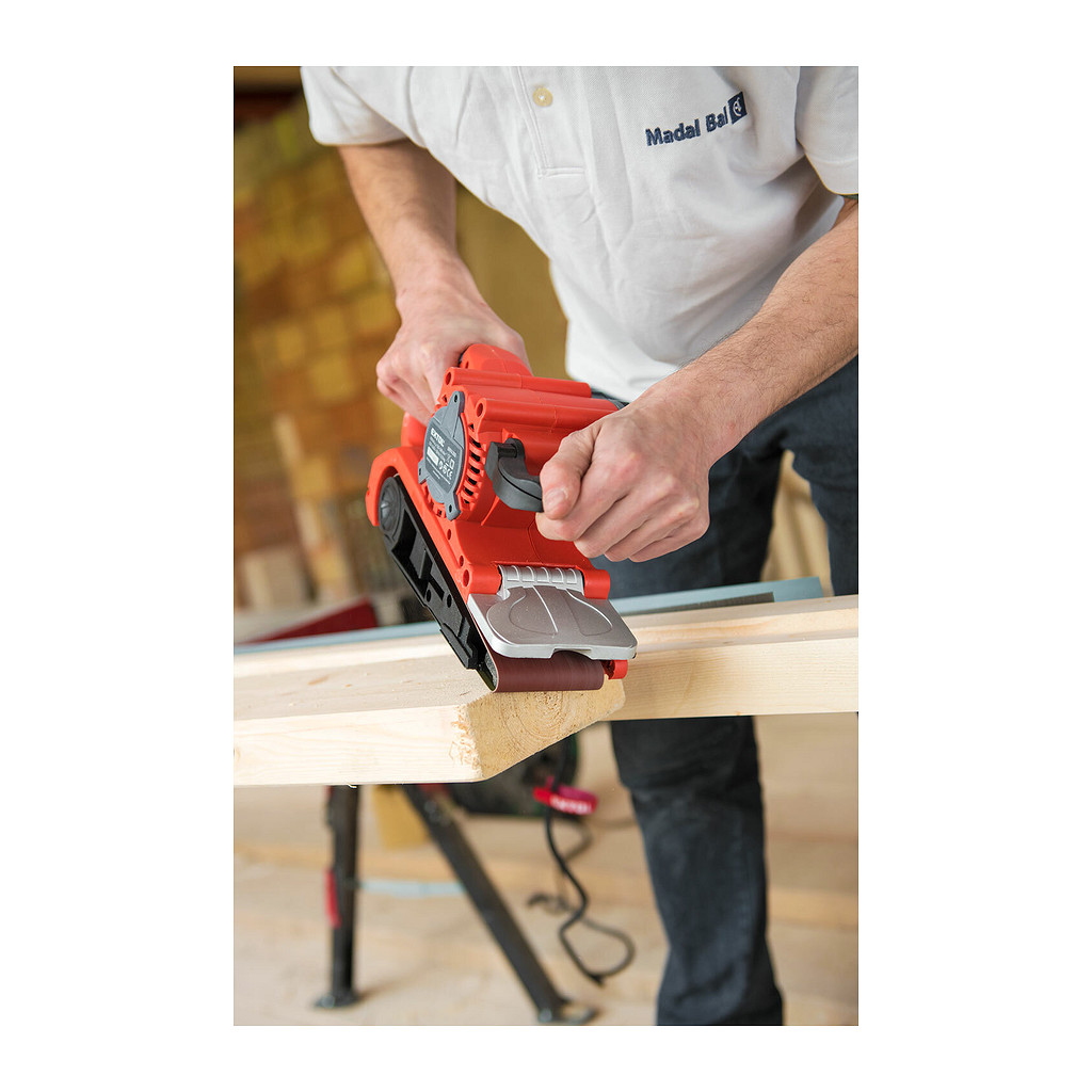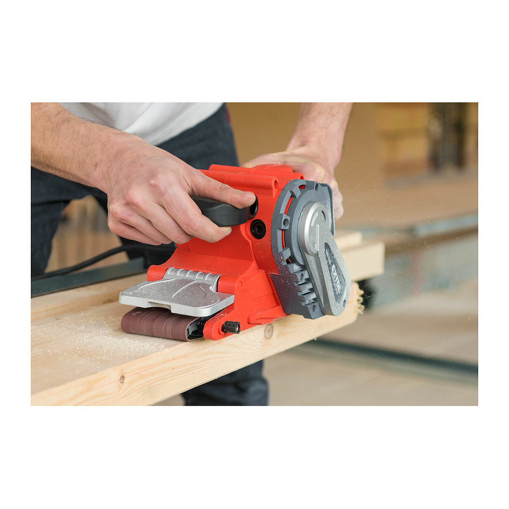 Výkonná pásová brúska je ideálna na rýchle a veľmi účinné plošné a hranové brúsenie najrôznejších povrchov, ako drevo, plast alebo kov. Po odklopení predného ochranného krytu je možné brúsku použiť na brúsenie užších škár, prípadne na dobrusovanie v horšie prístupných miestach.