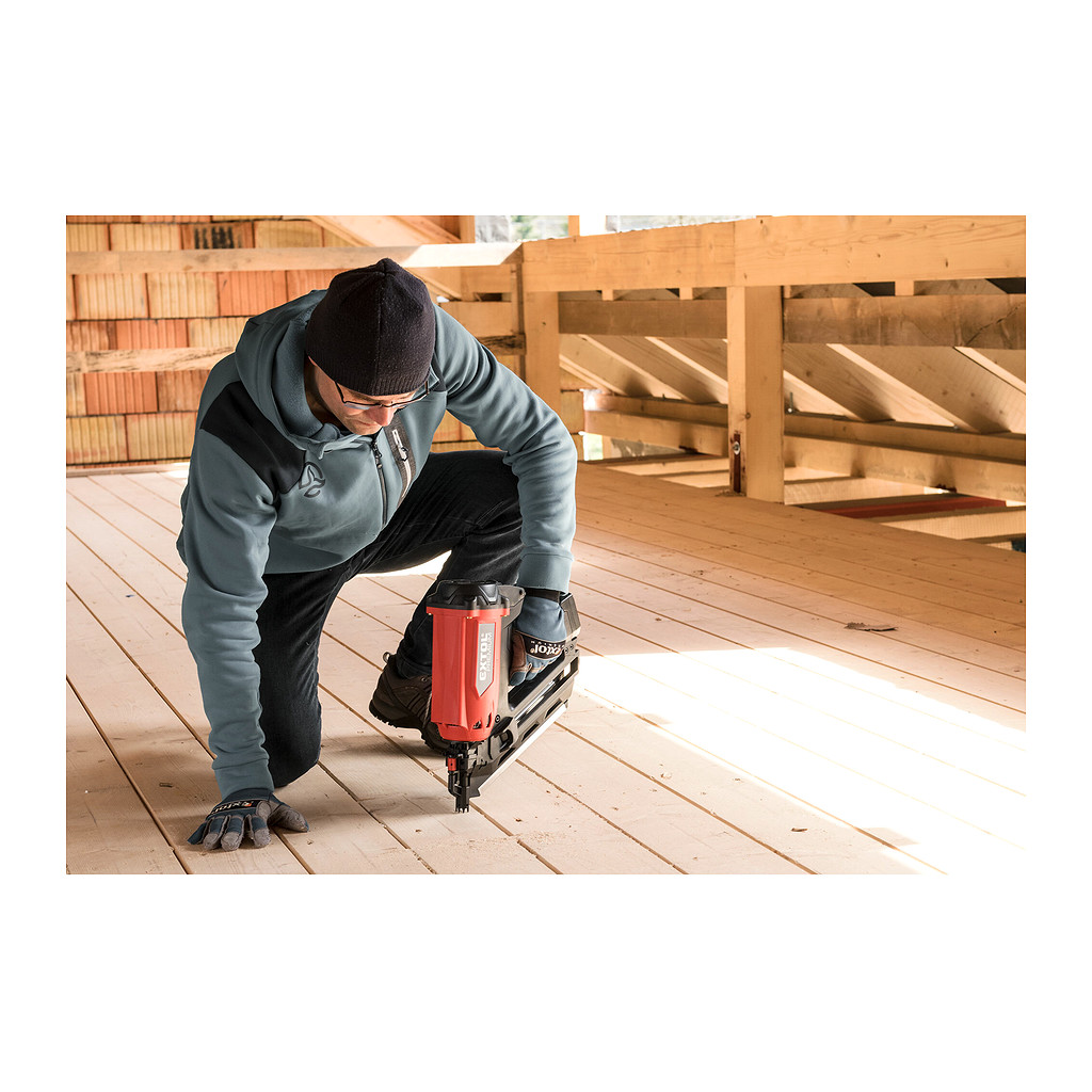 Silná klincovačka poháňaná plynovou kartušou s akumulátorovým zapaľovaním je určená pre náročné práce vo výškach, na výrobu konštrukcií z dreva, napr. spájanie krovov pri stavbe strechy alebo drevostavieb, na výrobu debnenia a pod. s použitím klincov s dĺžkou 50-90mm a uhlom sklonu 34°. V porovnaní s čisto akumulátorovou klincovačkou umožňuje nastreliť mnohonásobne viac klincov (až 1200ks) na jednu plynovú kartušu (nie je súčasťou dodávky). Výhodou oproti pneumatickej klincovačke je nízka hladina hluku a jednoduchosť prevádzky, keďže nie je potrebný rozvod vzduchu v mieste použitia. Klincovačka umožňuje jednoduché nastavenie hĺbky zarazenia klinca. Pri prerušení práce ju možno zavesiť za opasok. Vďaka tomu, že je klincovačka poháňaná zážihom plynu z malej plynovej kartuše (nie je súčasťou dodávky), je ľahká a má vysoký výkon. Súčasťou dodávky sú tiež dva malé a ľahké odnímateľné Li-ion akumulátory slúžiace pre zážih plynu. Vhodné klince: hladké 8862606, 8862607, 8862608, vrúbkované 8862603, 8862604, 8862605