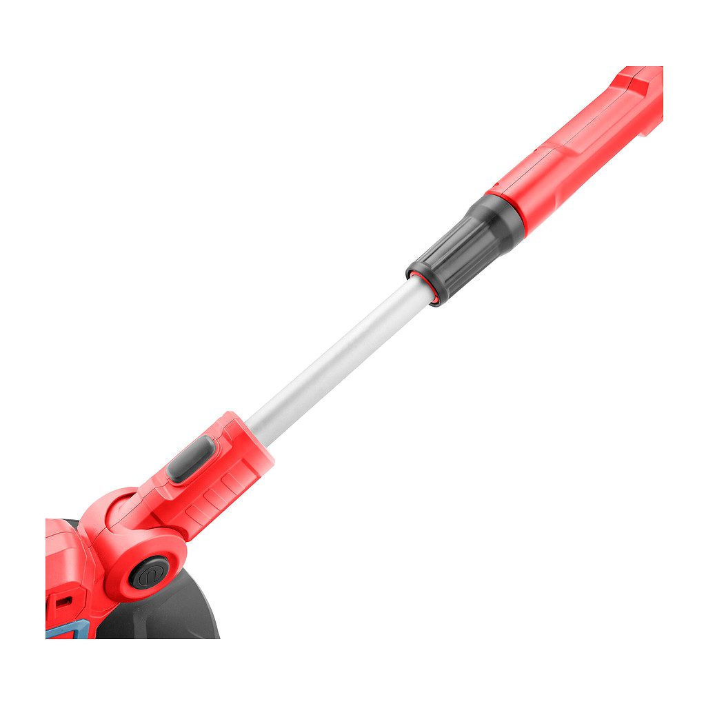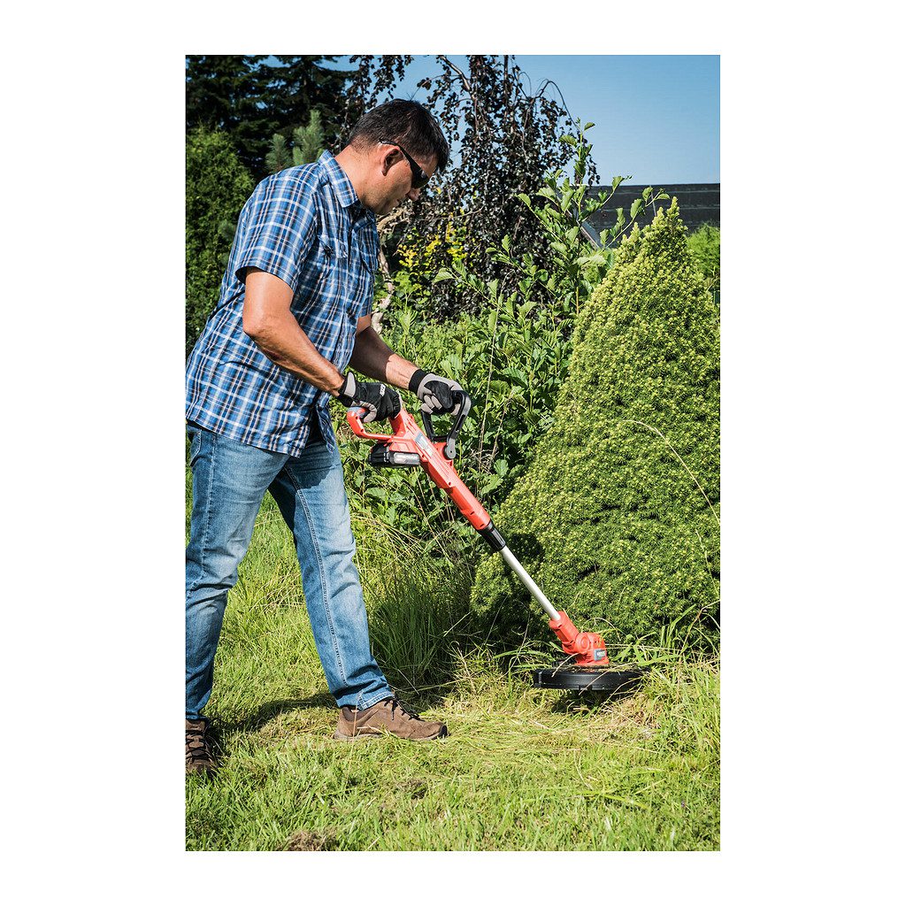 Strunová aku kosačka je určená na udržiavanie záhradného trávnika, k úprave okrajov trávnika a kosenie trávy v ťažko prístupných miestach, napr. pri obrubníkoch, pod lavičkami, okolo stromov a kríkov a pod., ktoré je ťažké alebo nemožné kosiť pojazdnou kosačkou. Hlavu kosačky je možné polohovať a tiež ju vertikálne otočiť, čo uľahčuje kosenie okrajov trávnika pozdĺž chodníkov, príjazdových ciest a pod. Rukoväť kosačky je možné predĺžiť až o 23cm, takže s ňou môžu pohodlne kosiť ľudia všetkých veľkostí. Lanko je možné predĺžiť buď manuálne stlačením tlačidla na žacej hlave alebo pri práci, poklepom o zem. Ochranný kryt je vybavený nožom, ktorý automaticky oreže lanko na patričnú dĺžku. Vďaka napájaniu z batérie už nie je nutné dávať pozor na napájací kábel, manipulácia s kosačkou je tak ľahšia a pohodlnejšia. Pogumovaná rukoväť bráni vyšmyknutiu, tlmí vibrácie a spríjemňuje držanie pri práci. Kosenie pozdĺž plotov, múrov alebo stromov uľahčuje sklopiteľný dištančný oblúk, ktorý zároveň šetrí žacie lanko. Akumulátor je vybavený indikáciou nabitia, čo umožňuje užívateľovi rozvrhnúť si dĺžku práce a dať si akumulátor včas nabiť. Li-ion akumulátor je možné kedykoľvek dobíjať, bez toho aby sa tým znižovala jeho kapacita, vplyvom samovybíjania stráca energiu len veľmi pomaly a vydrží dlho nabitý.