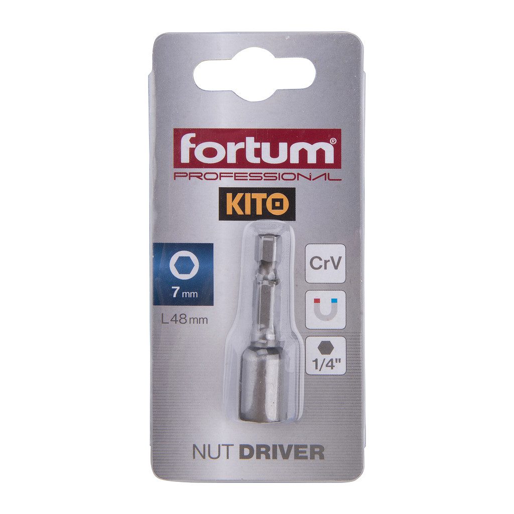 Domov » Náradie » Príslušenstvo » Bity na skrutkovanie » Nástrčkové hlavice » 1/4" Zástrčkové hlavice HEX » Jednokusové balenia » Fortum 4741607 – Hlavica nástrčná magnetická so 6-hrannou stopkou 1/4’’, 7x48mm
