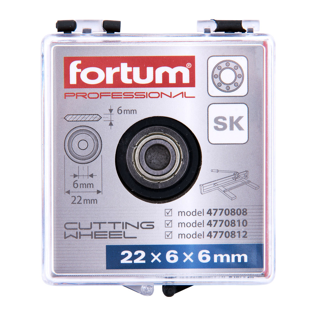 Domov » Náradie » Ručné náradie » Rezačky » Fortum 4770805 – Koliesko rezacie ložiskové do rezačky, 22x6x6mm, pre 4770808, 4770810, 4770812