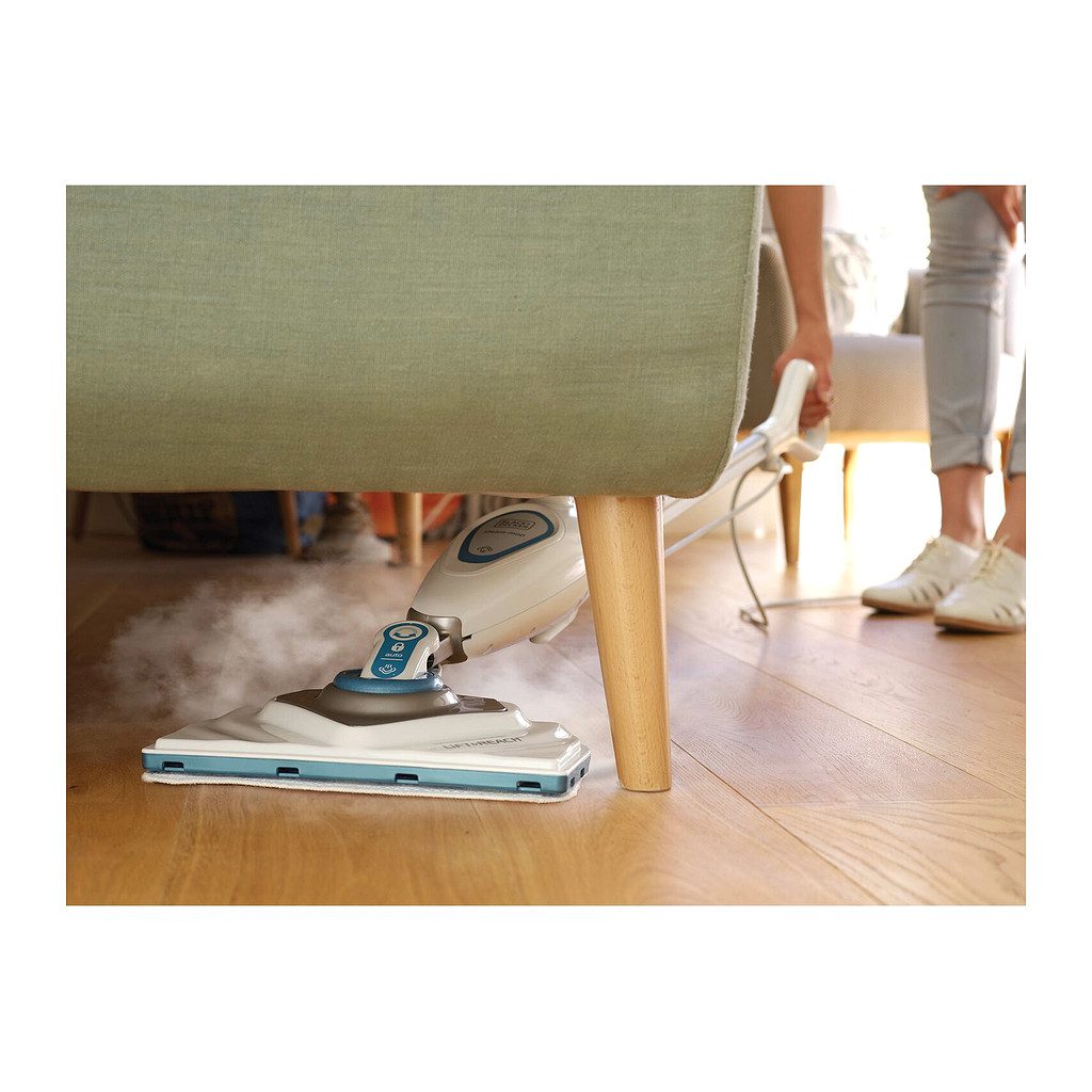 Black+Decker FSM1615 – Elektrický parný mop 1600W, biely/modrý