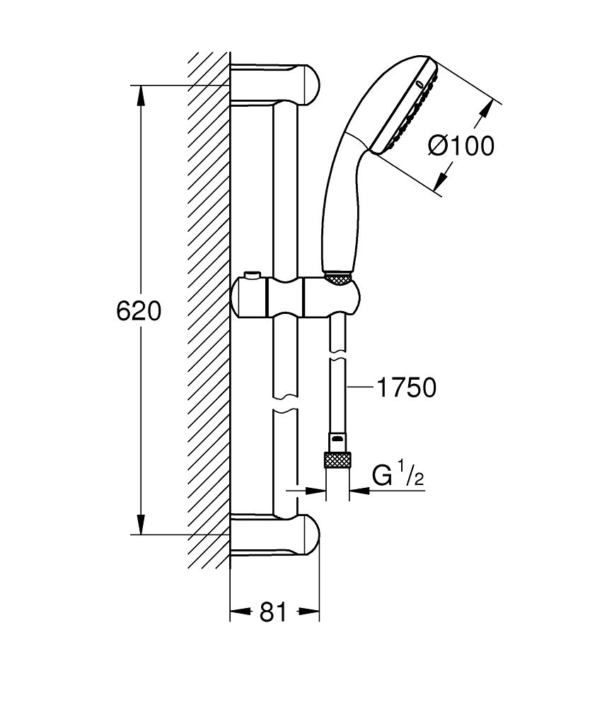 • Súprava obsahuje: ručná sprcha Vitalio Go 100, sprchová tyč 620 mm, sprchová hadica Vitalioflex Trend 1750 mm 1/2″ x 1/2″