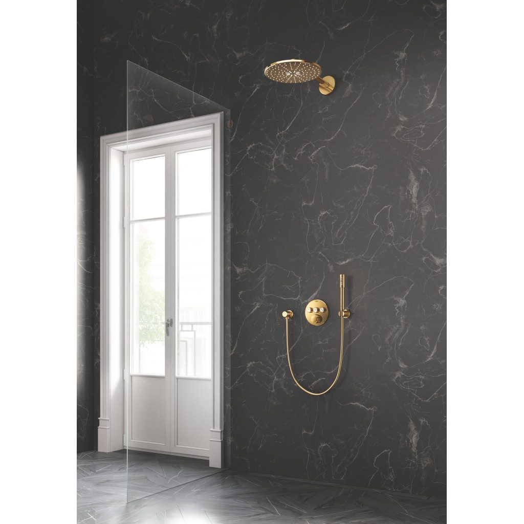 Domov » Sanita » Kúpeľne » Sprchy » Hlavové sprchy » Grohe Rainshower SmartActive 310 – Set zo steny okrúhlej hlavovej sprchy s 2 režimami prúdu, Cool Sunrise 26475GL0