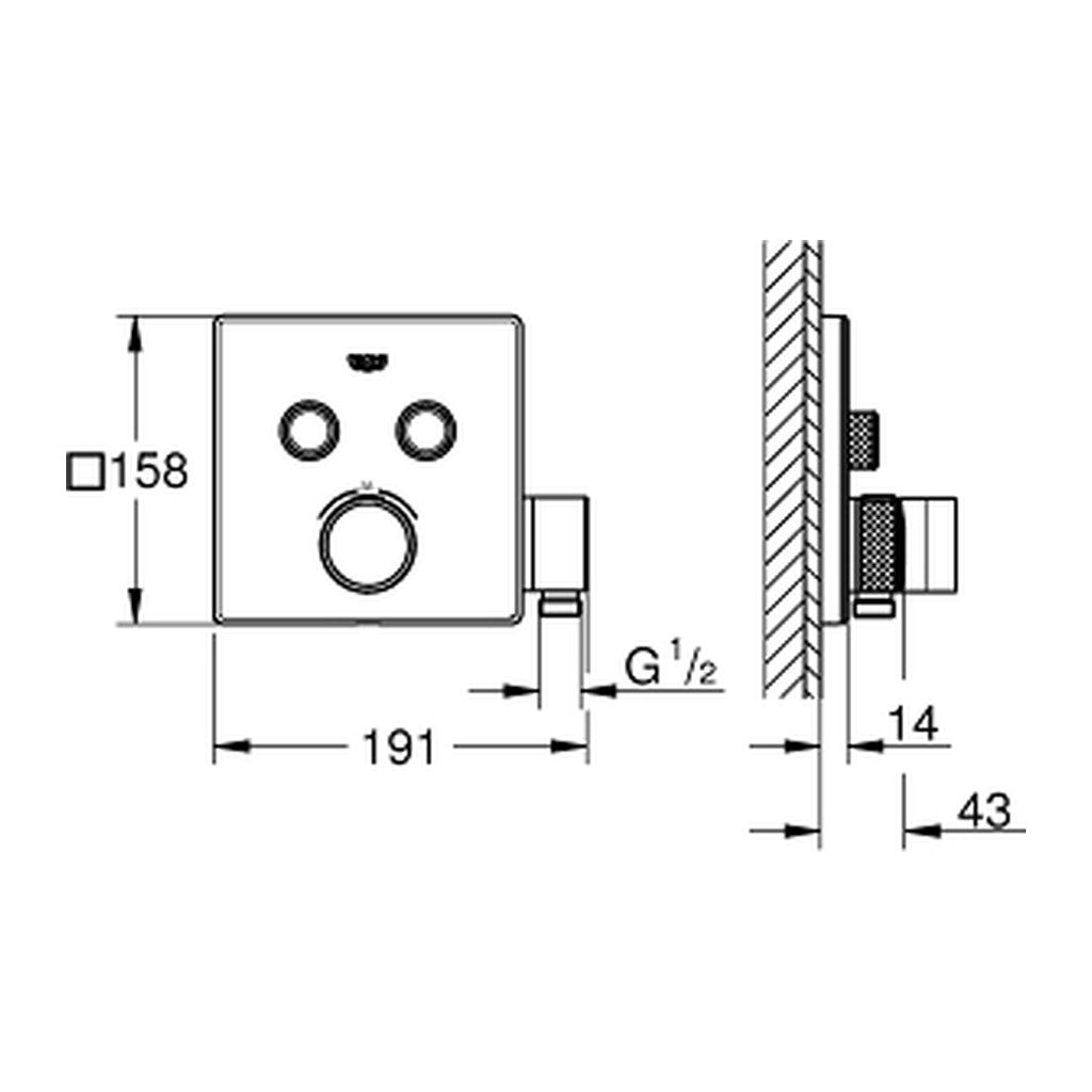 Páči sa vám predstava dosiahnuť dokonalú teplotu vody a jej objem vo vani alebo sprche prostredníctvom jediného tlačidla? To si teraz, vďaka batérii Grohtherm SmartControl, môžete ľahko splniť. A k tomu veľké množstvo ďalších užitočných funkcií, napríklad integrovaný vývod sprchy a nástenný držiak ručnej sprchy. Podomietková termostatická batéria Grohtherm SmartControl sa navyše pýši minimalistickým dizajnom, ktorý zaručene obohatí každú modernú kúpeľňu. Inovatívne technológie SmartControl vám umožnia prepínať medzi požadovanými zdrojmi prúdu a regulovať objem vody a jej teplotu pomocou otočných tlačidiel. Dva ventily znamenajú, že môžete ľahko prepínať, alebo kombinovať, hlavovú a ručnú sprchu, prípade sprchu a vaňový výpust. Integrovaná technológia GROHE TurboStat zabraňuje nepríjemným teplotným výkyvom. Označenie GROHE EasyLogic a vrúbkované tlačidlá s vymeniteľnými symbolmi robia ovládanie mimoriadne intuitívnym. Bezpečnostná poistka GROHE SafeStop zabraňuje nastaviť teplotu vyššiu než 38 °C, aby nebolo možné sa popáliť, zatiaľ čo voliteľná poistka GROHE SafeStop Plus ďalej zabraňuje nastaviť vyššiu teplotu než 43 °C, čo je pridaná úroveň zabezpečenia. Batéria je tak dokonale vhodná do rodinných kúpeľní. Úsporná technológia GROHE EcoJoy vám ponúkne znížený prietok vody bez akéhokoľvek kompromisu vo výkone a pôžitku. Systém GROHE QuickFix zaisťuje jednoznačnú a bezproblémovú montáž tejto prémiovej batérie. Štíhla konštrukcia zásadne uľahčuje čistenie batérie, zatiaľ čo ligotavý, odolný chrómový povrch GROHE StarLight zaisťuje dokonalý vzhľad po celý dlhý čas životnosti. Táto batéria jednoznačne pozdvihne úroveň vašej kúpeľne, a to nielen vďaka svojmu minimalistickému dizajnu plného elegantných štvorcových tvarov.