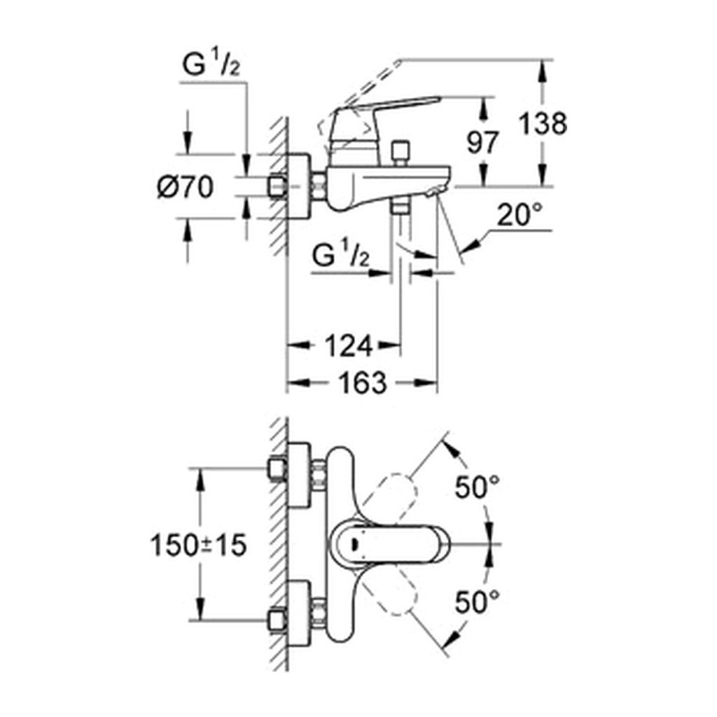 Domov » Sanita » Kúpeľne » Vodovodné batérie » Vaňové batérie » Vaňové batérie nástenné » Grohe Eurosmart Cosmopolitan – Páková vaňová batéria nástenná, chróm 32831000