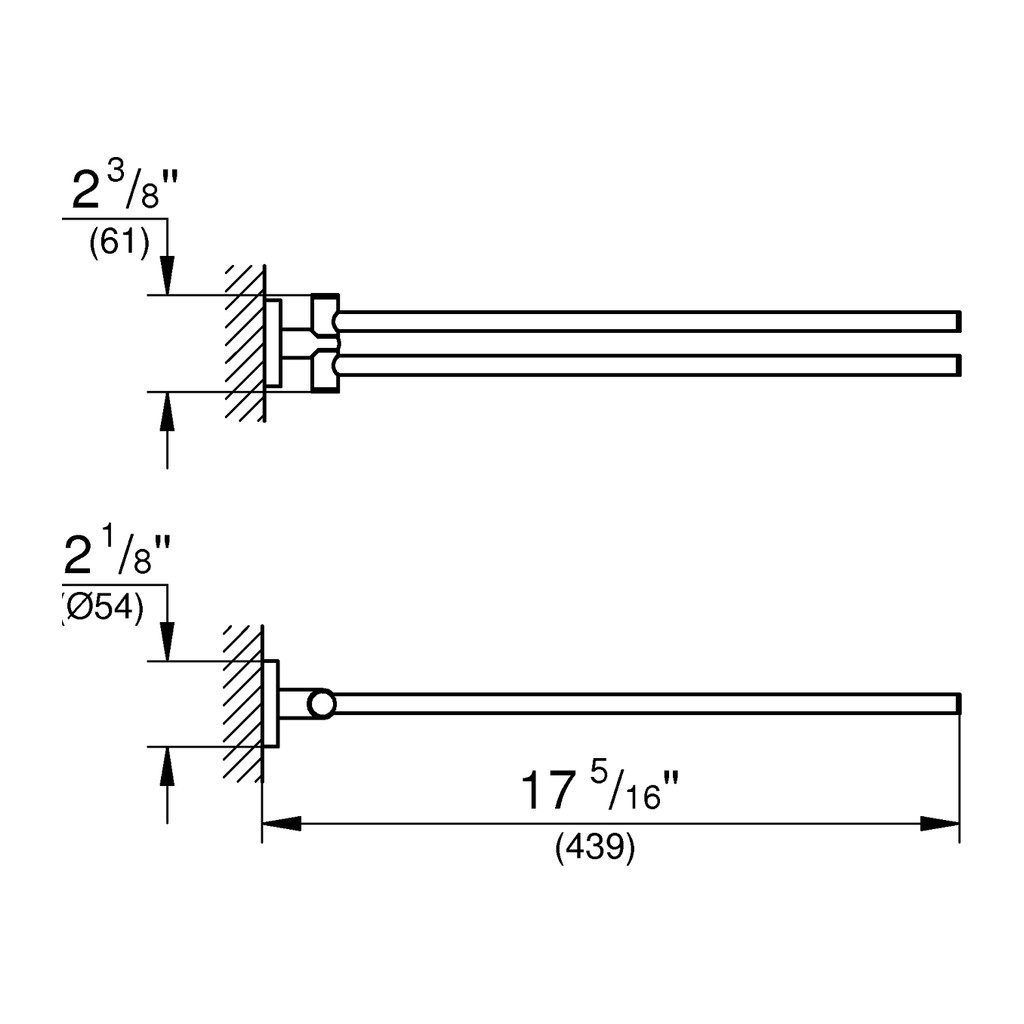 Precízne spracované doplnky z radu GROHE Essentials napomáhaju vytvoriť dokonale zjednotený kúpeľňový interiér. Táto praktická závesná tyč na uteráky (439 mm) s podomietkovým upevnením a dvoma otočnými ramenami predstavuje skvelý spôsob skladovania uterákov. Pýši sa bezkonkurenčnou nemeckou výrobou, odolným, ľahko udržiavateľným povrchom GROHE StarLight, ktorý si zachová svoj dokonalý vzhľad mnoho rokov. Disponuje tiež jednoduchou inštaláciou prostredníctvom malého množstva zrozumiteľných inštrukcií. Nezabudnite si prezrieť taktiež ďalšie produkty z tejto obsiahlej kolekcie, ako je napríklad vešiak na župany, toaletná kefa, držiak toaletného papiera a niekoľko typov držiakov na uteráky a vaňových rukovätí. Alebo, ak hľadáte jednoduché a praktické riešenie, prečo nevyskúšať niektorú z našich zladených súprav „všetko v jednej“? Doplnky GROHE Essentials – precízne spracovanie a nadčasový dizajn, ktorý pretrvá. Skvelý spôsob, akým dosiahnuť dokonalú harmóniu v kúpeľni.