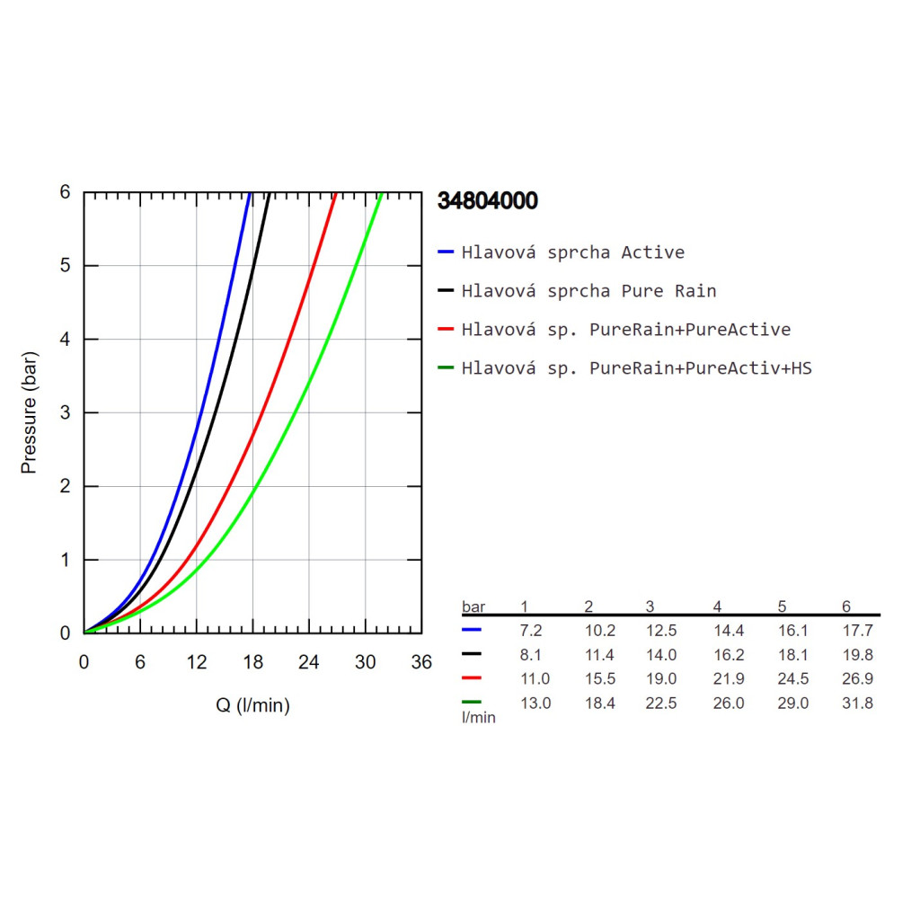 • Sprchový prúd hlavovej sprchy: GROHE PureRain, ActiveRain
